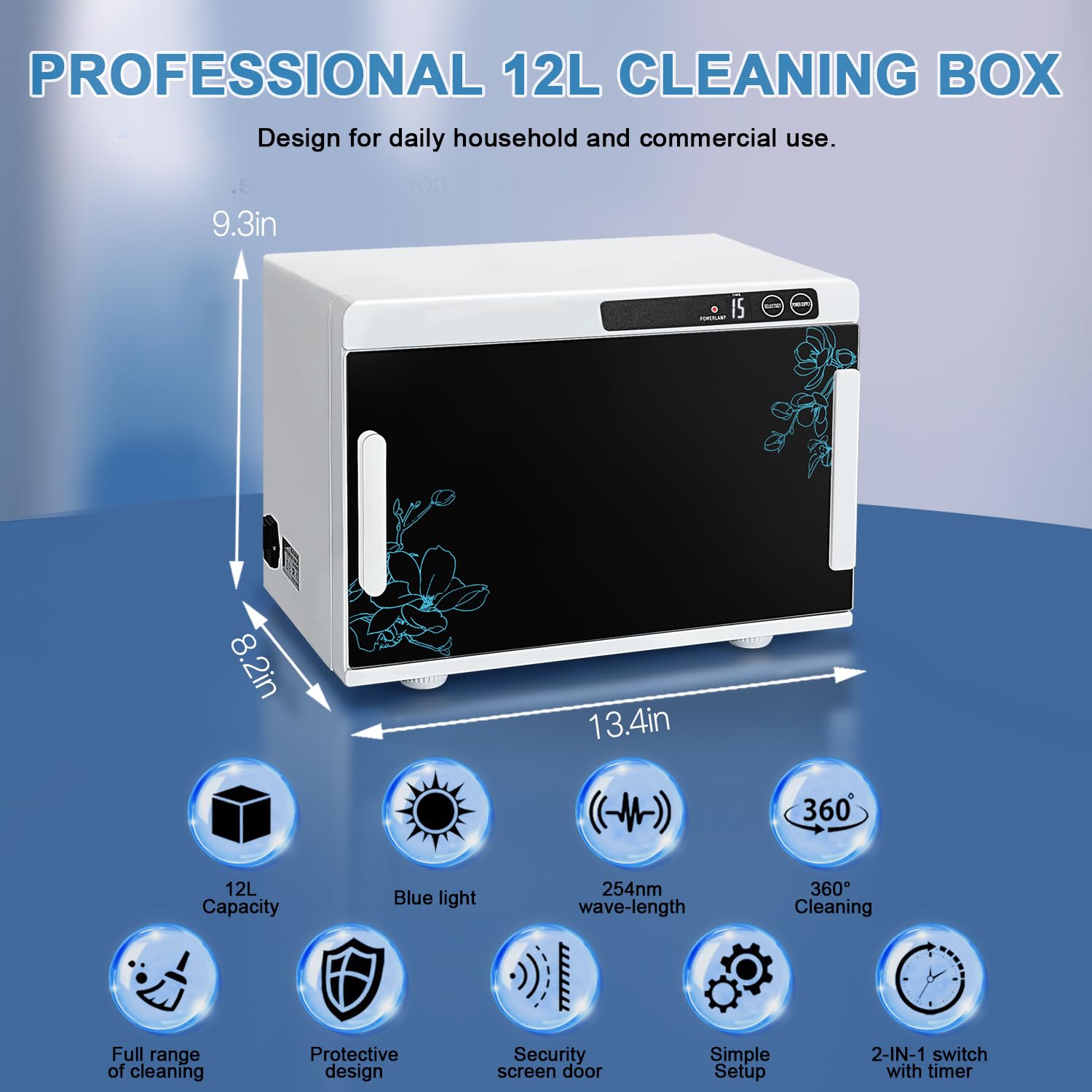 • βœ… π„πŸπŸπ’πœπ’πžπ§π­ 𝐂π₯𝐞𝐚𝐧𝐒𝐧𝐠: Our cleaning cabinet is equipped with durable quartz lamps with a service life of up to 5000 hours, the wavelength is 185-254nm. Stainless steel interior sturdy and durable, easy to maintain, and enhanced light reflection effectively accomplishes 360Β° cleaning of items, more efficient. Our oven pro uses light, not heat, so it is safe for all objects. It's a a great addition to your routine, which safeguards your family's health.