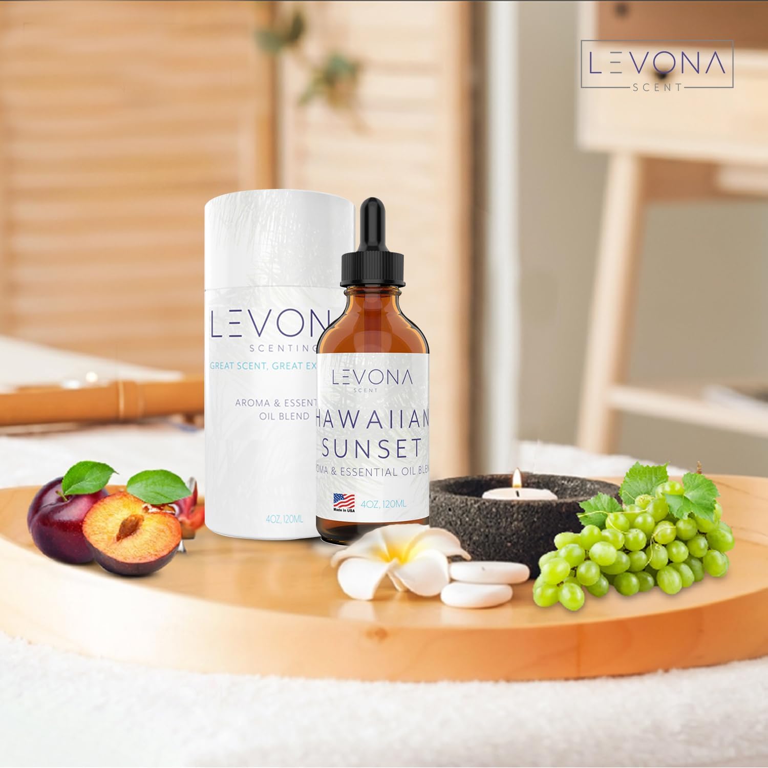 Levona Scent Essential Oils - Scents for Home, Hotel & Office Use - Perfect for Home Diffuser & Humidifiers - Aroma Fragrance Oil, Ideal for Massage, Relaxation, and Spa - Hawaiian Sunset, 120ml