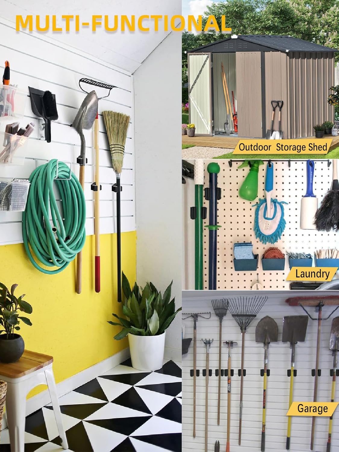 • Wide Application: Magnetic broom holder for refrigerator allows you hold various household objects; like broom; mop, dustpan; garden tools; shovels; etc.; can be used in the laundry; kitchen; bathroom; utility room; garage; shed; garden etc