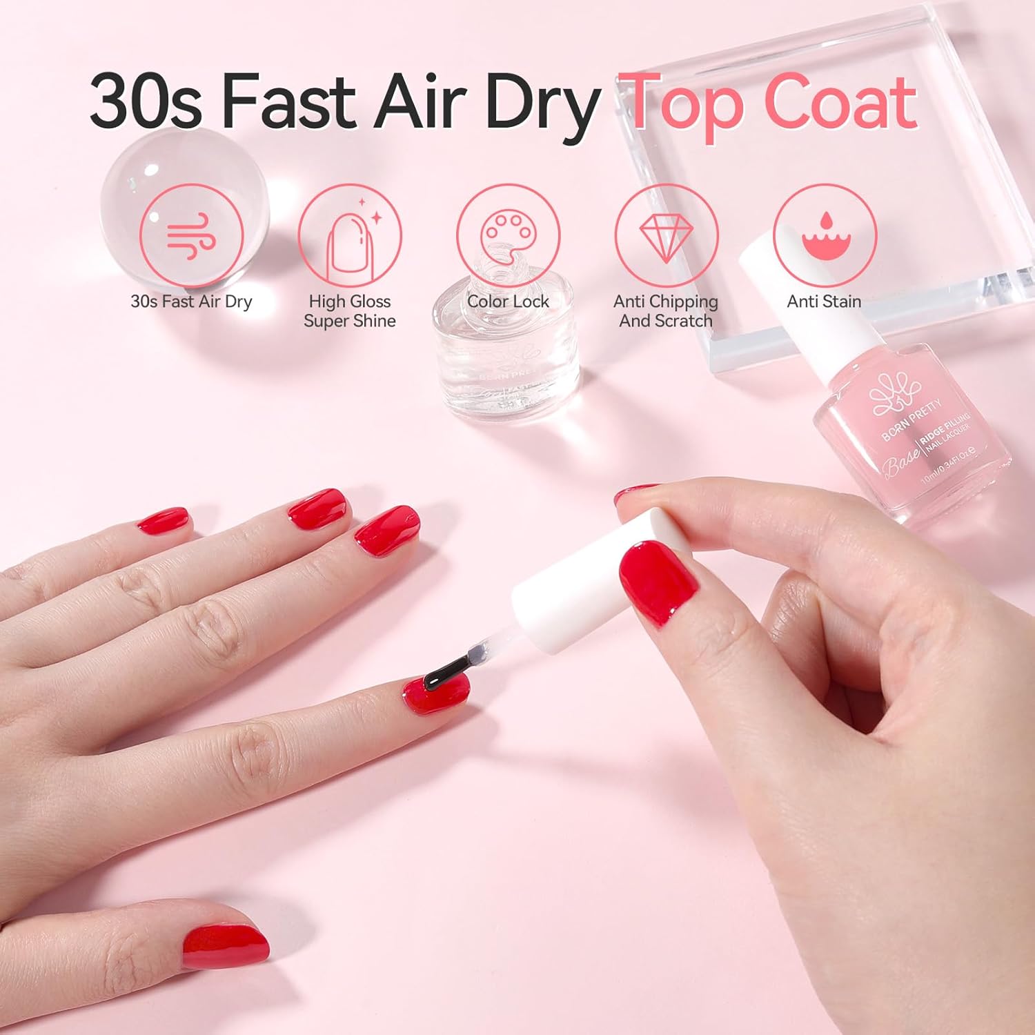 Born Pretty Clear Nail Polish Base and Top Coat Set 2 PCS High Shine Glossy Finish Quick-Dry No U V Needed Low Odor Natural Compatible with Nail Lacquer DIY Salon 0.34 fl oz Each