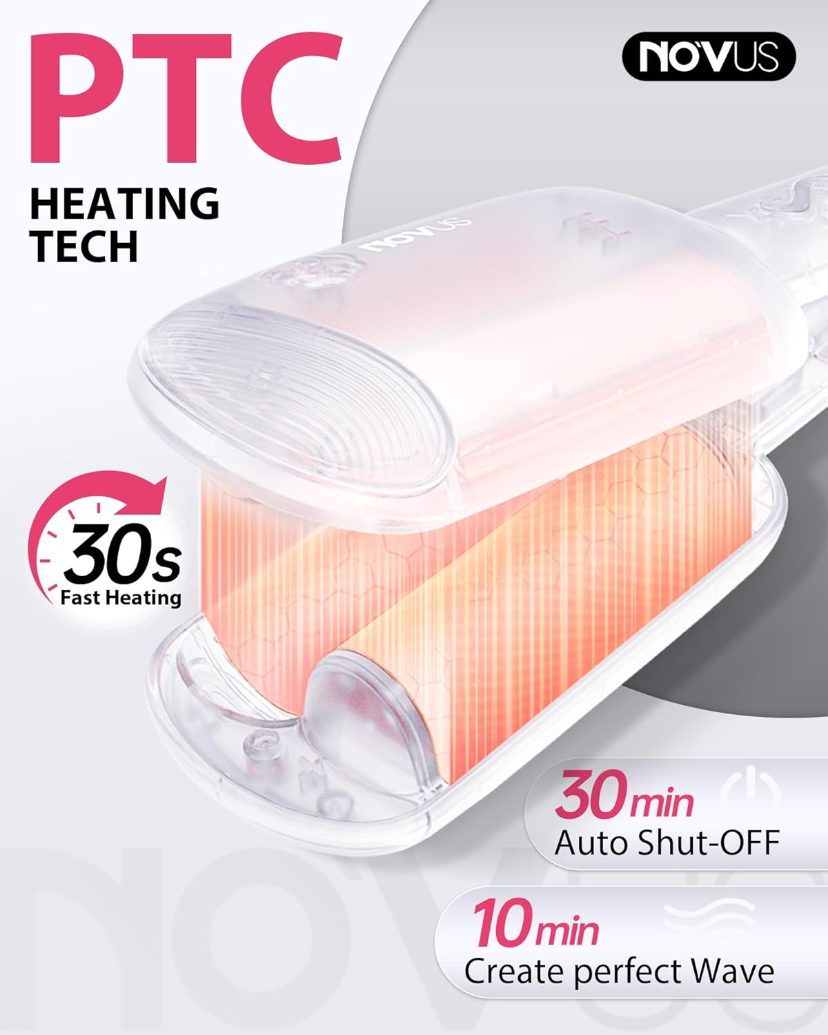 NOVUS Waver Curling Iron, Beach Waves Curling Wand, Ionic Hair Waver with Anti-Scald Hair Crimper, Easy to Use, 2 Barrel Hair Crimper for All Hair Types Women, Pink, 1.25 Inch