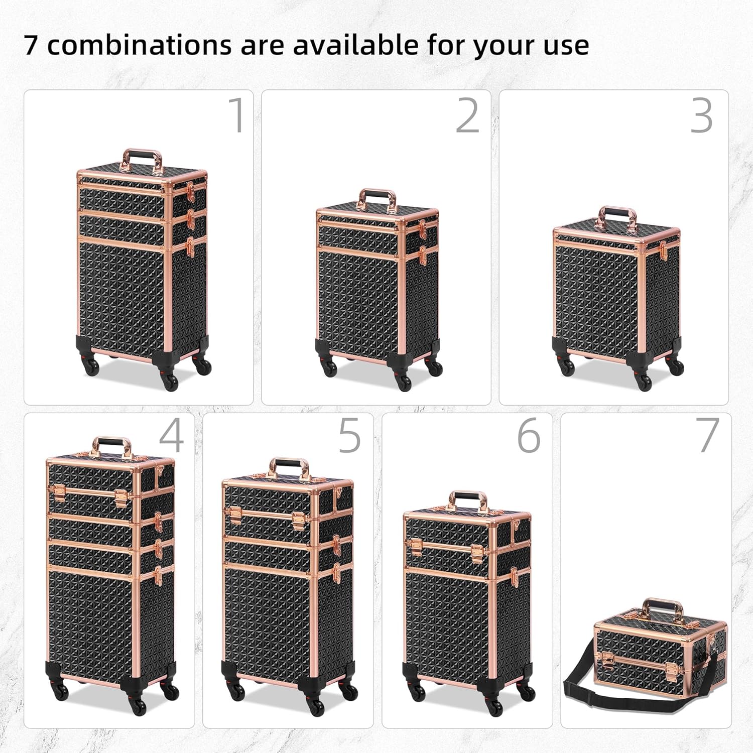 • 【Bonus Lid for Added Convenience:】The rolling makeup case is included a bonus lid that allows you to transform the portable makeup box into a standalone first layer. This means you have 7 different storage layer combinations at your fingertips, providing the ultimate versatility and organization for your beauty essentials.