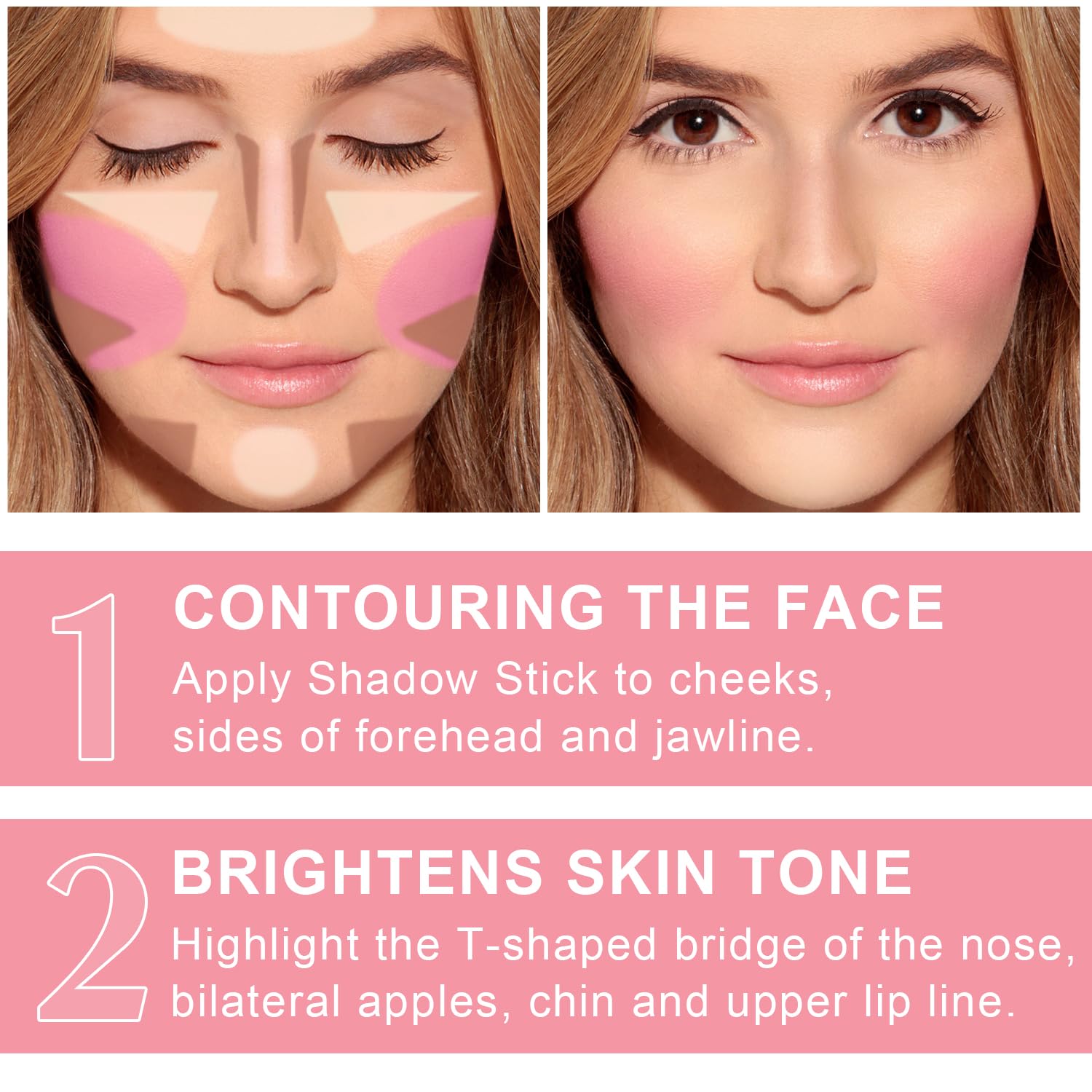 • 【Comes with Makeup Brush and Sponge】Our contour stick set comes with a premium soft double-ended makeup brush and sponge for blending stick cream, it can help improve your skin tone and face contour for a natural, glamorous look.