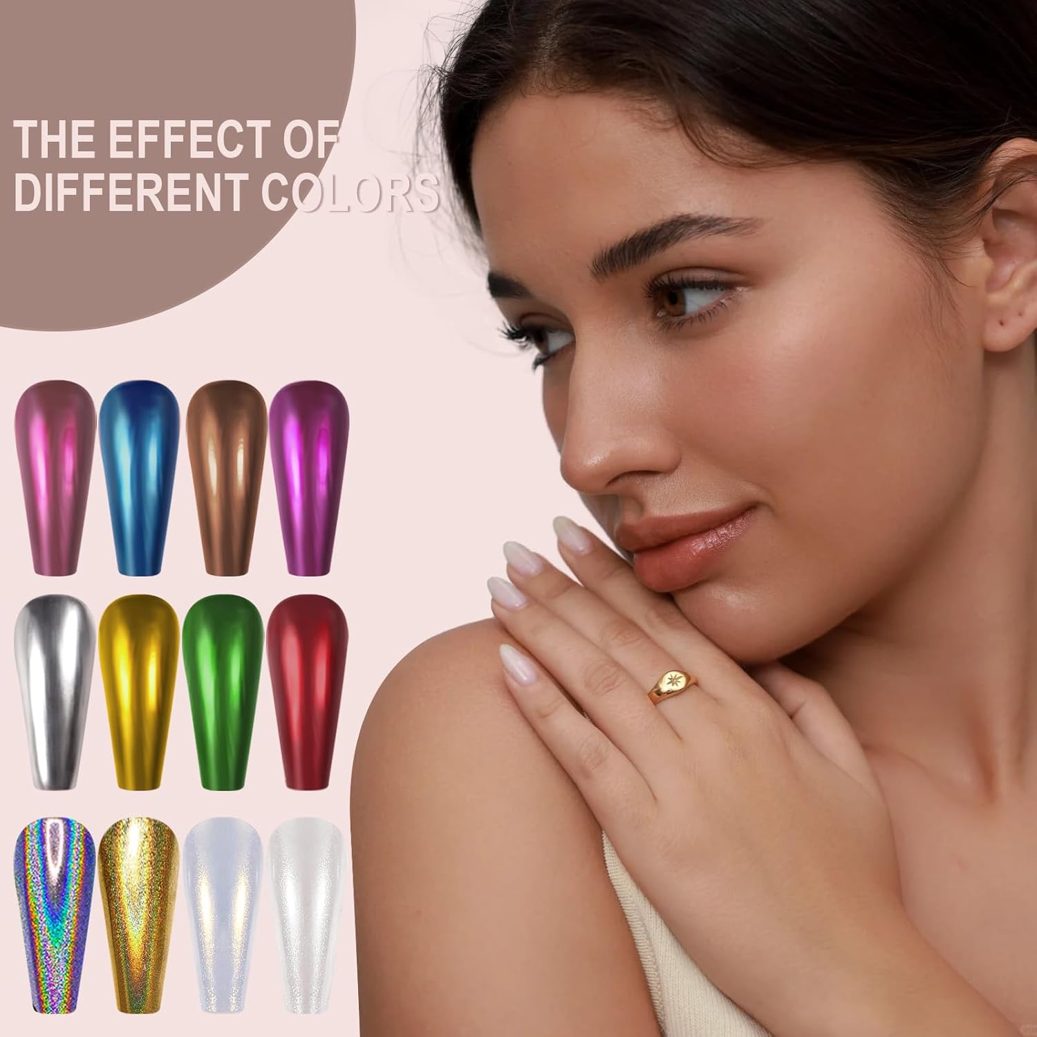 • PACKAGE CONTAINS: 12 pcs(each 1gram) Artdone Chrome Nail Powder, 2 for white based chrome nail mirror pigment powders, 10 for colored mirror chrome powder. They needs to be used with gel nail polish and no wipe top coat