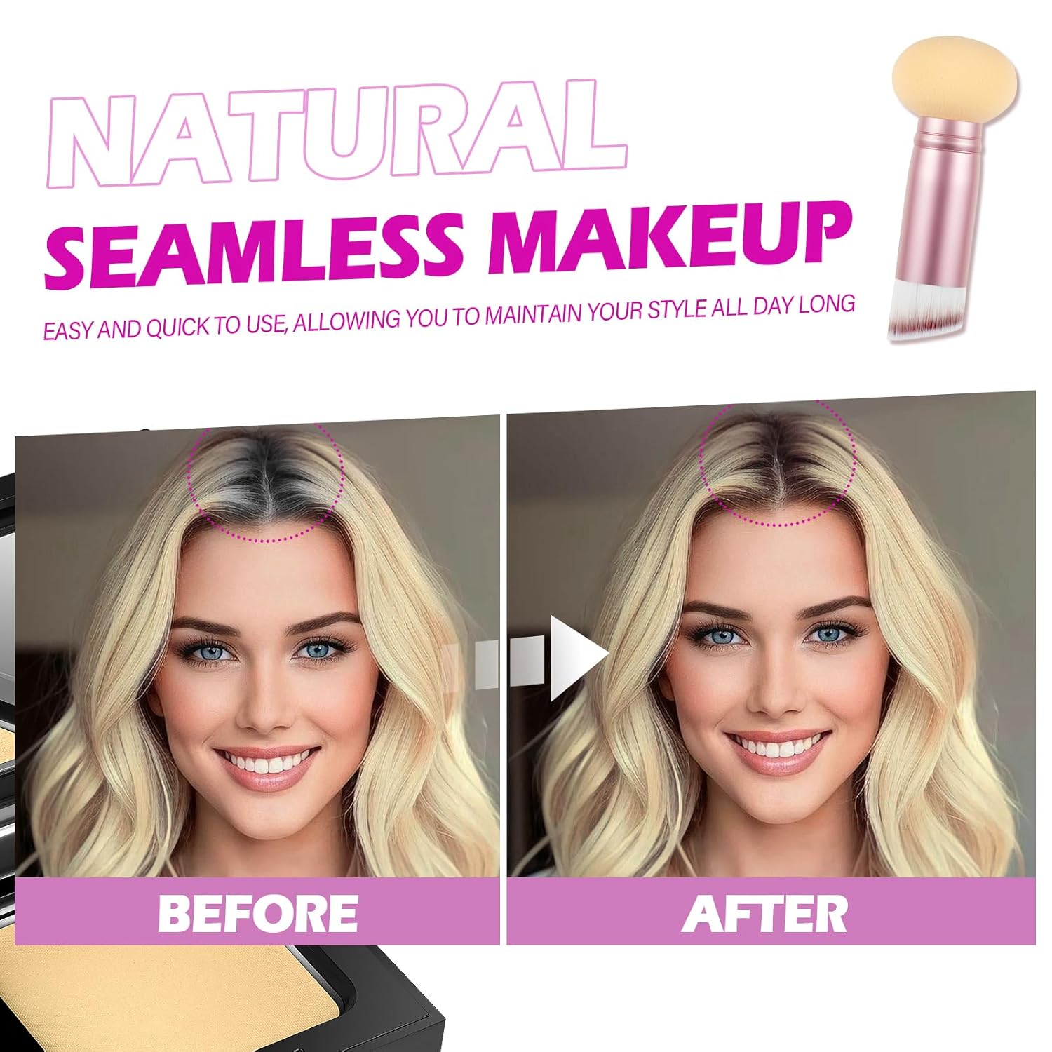• COMPACT ROOT TOUCH UP HAIR COLOR: Unique travel kit design, hairline shadow powder come with mirror, hairline powder, powder puff and rose pink dual-ended hair makeup brush applicator with sponge tip, convenient to carry on daily or traveling. You can cover hair root instantly, define your hairline and make up at anytime, anywhere