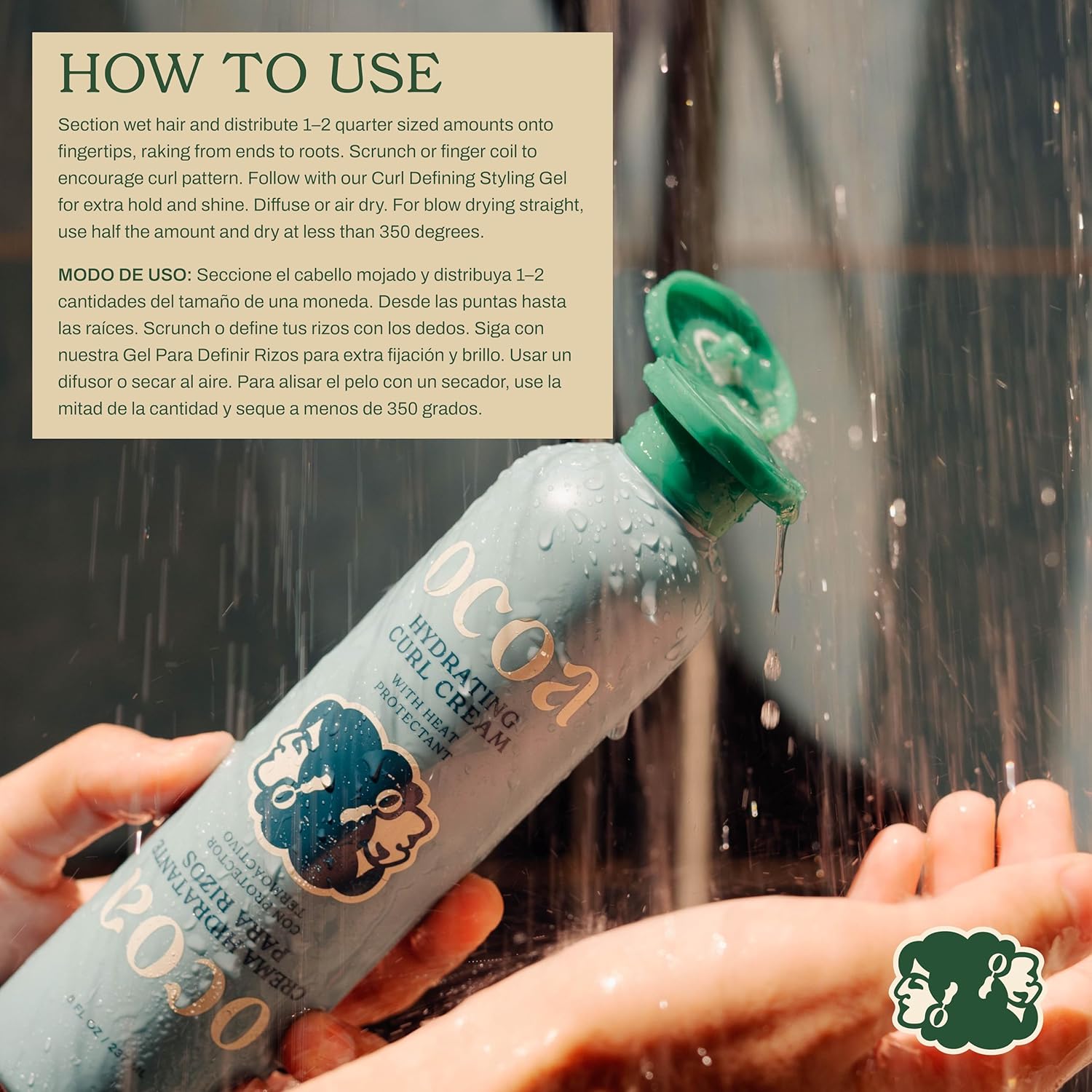 OCOA Beauty Hydrating Curl Cream with Hibiscus, Mango Butter, and Marula Oil - Defines, Moisturizes, Controls Frizz & Protects from Heat - For Curly & Wavy Hair, 8 oz