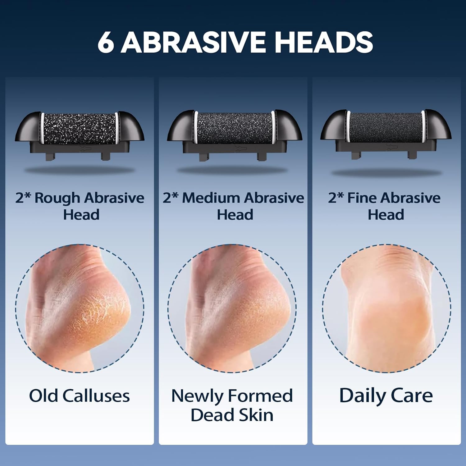 • Versatile Performance – With two power settings and six interchangeable grinding heads, you can easily customize the experience to meet your specific needs, ensuring soft, smooth feet with minimal effort.