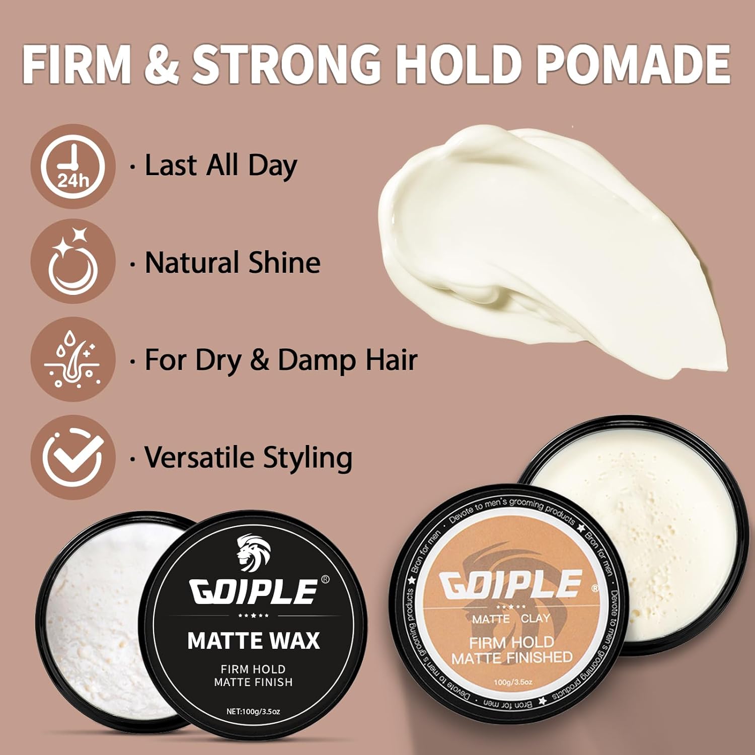 • Dual Combo, Ideal Match: This set includes 2 styling products specifically designed for men, a strong hold matte pomade and a firm hold matte pomade, catering to your diverse styling needs