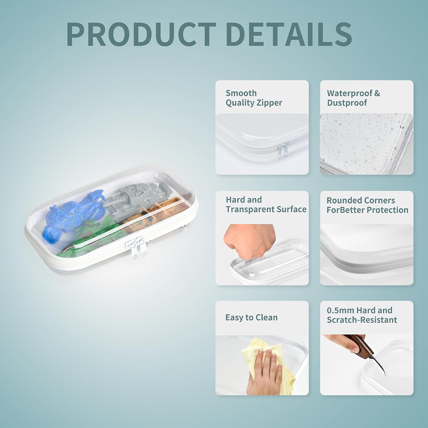 • Premium Construction: These clear hard zipper cases are made of PET material, which is not only sturdy and durable, but also easy to clean. Reinforced zippers and seams provide extra durability, making it a reliable choice for daily use and long-term storage.