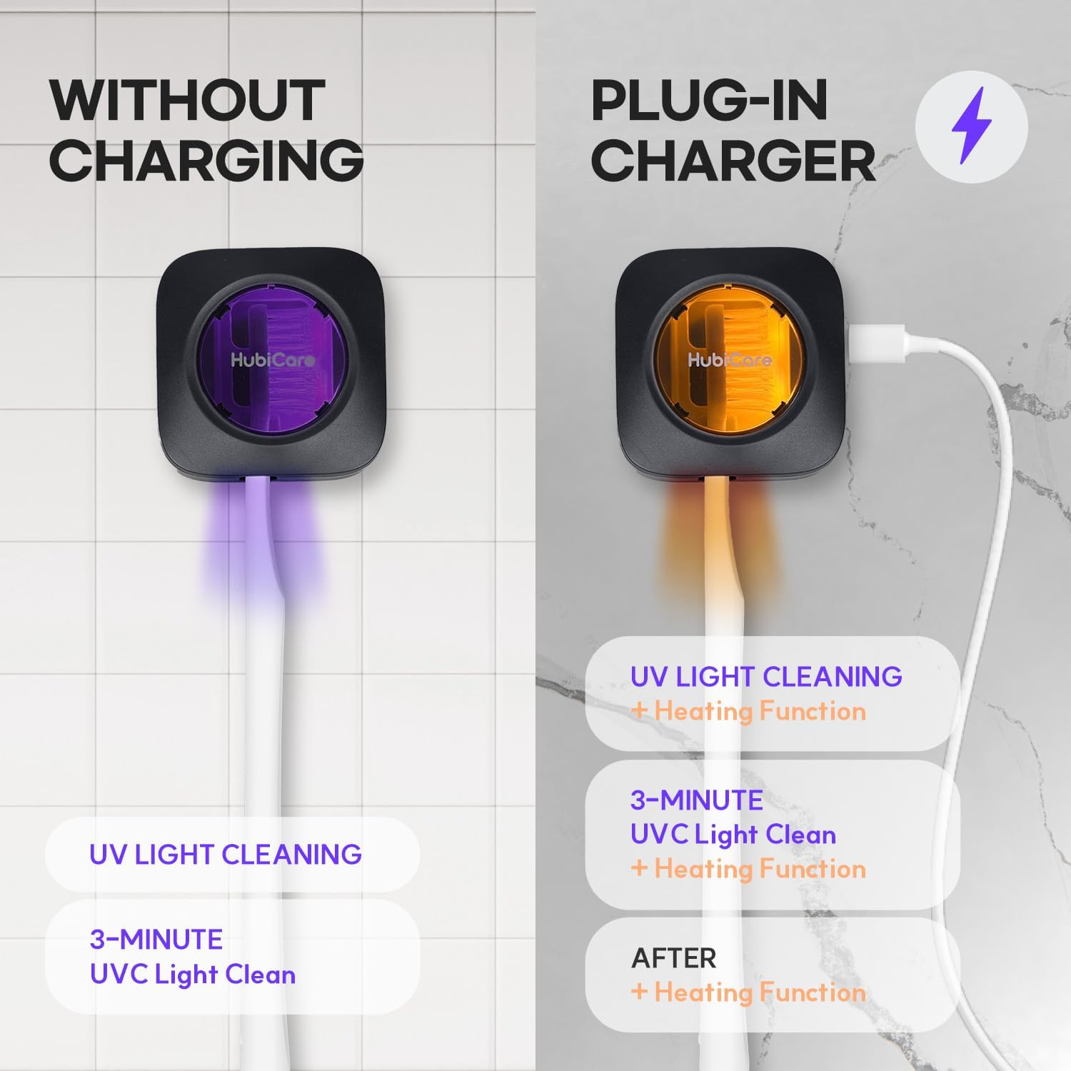 • ✅【New UV-C Light Toothbrush Cleaner】Portable toothbrush holder uses UV light to physically kill up to 99.9% of filth on your toothbrush. Quickly clean all sides of your toothbrush bristles in just 5 minutes. HubiCare toothbrush cleaner case with powerful light can deeply clean your toothbrush, ensuring you and your family have clean toothbrushes.