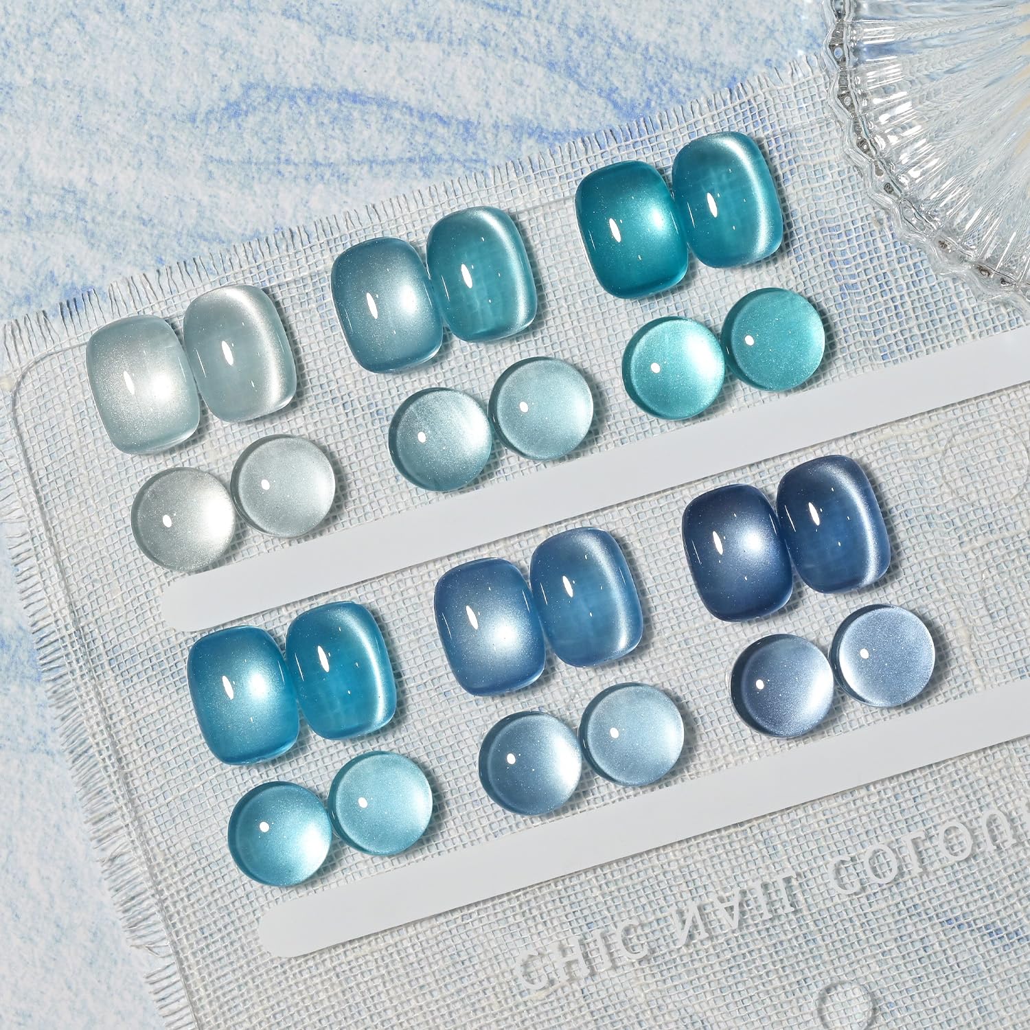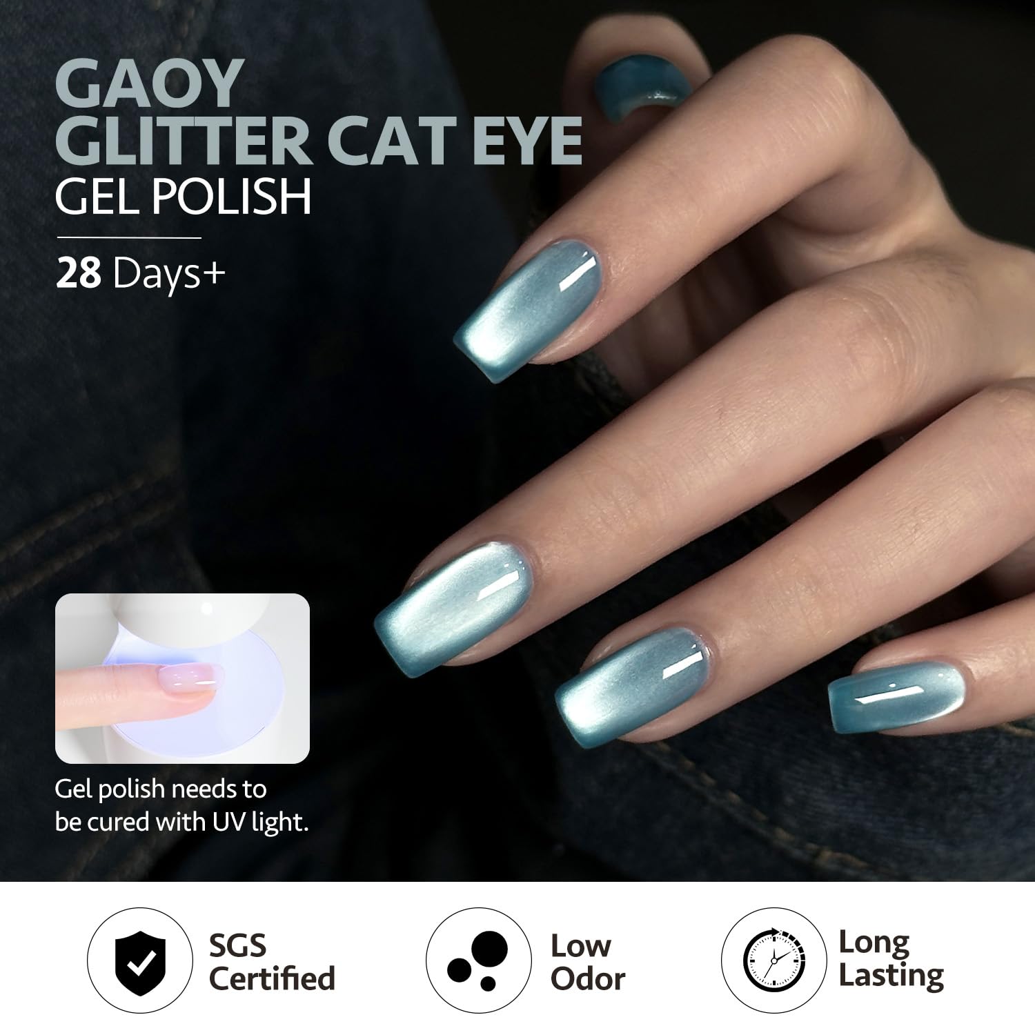 GAOY Blue Cat Eye Gel Nail Polish Set with Magnet for Glitter Holographic Cat Eye, Salon UV Gel Manicure and Nail Art DIY at Home, Tropical Sea
