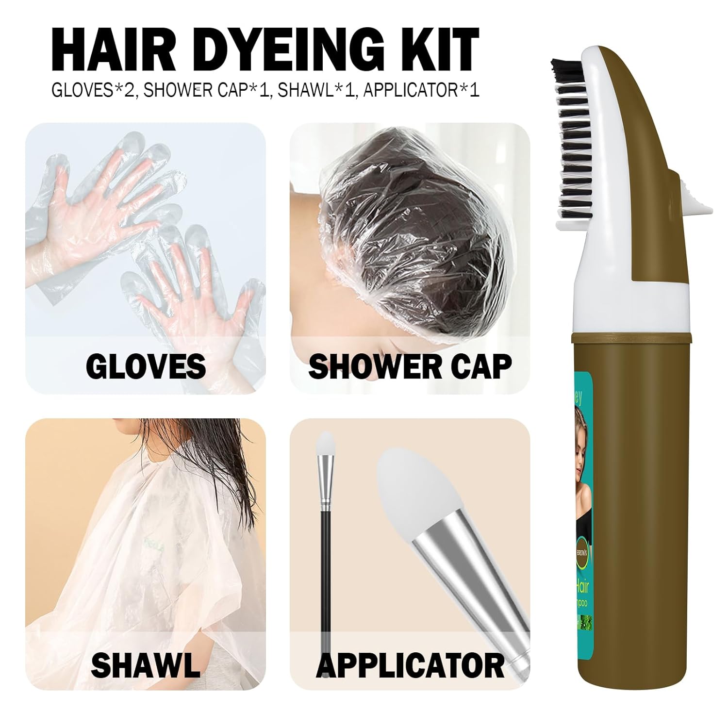 • 6.So Easy To Use:Our Comb Hair Color dye No Need any other tools Such as bowl or brush, just need to put on gloves, and use it the same as normal Comb your hair with a comb, wait for only 20 - 35 minutes(For full coverage of grey hair stay time 30 minutes), Our hair dye shampoo for Women and Men Girls and Boys will cover all your grays! Doesn't stain your skin.And smell nice.