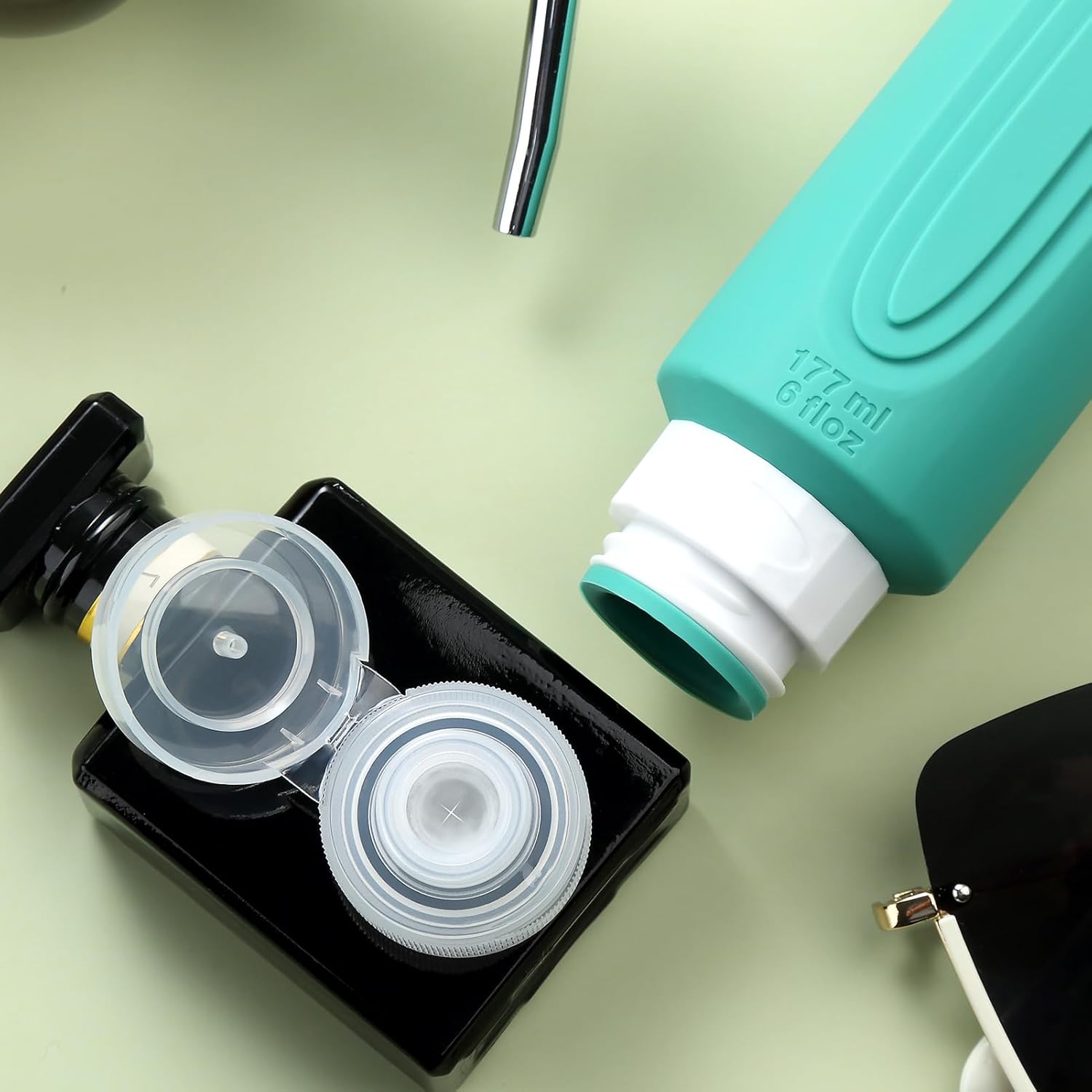 • Oversize 6oz travel bottle: Featuring a PVC toiletry bag, these travel-sized silicone bottles are perfect for storing and dispensing your favorite shampoos, lotions, and other liquids. Designed for convenience and durability, this travel set is a must-have for all your adventures.