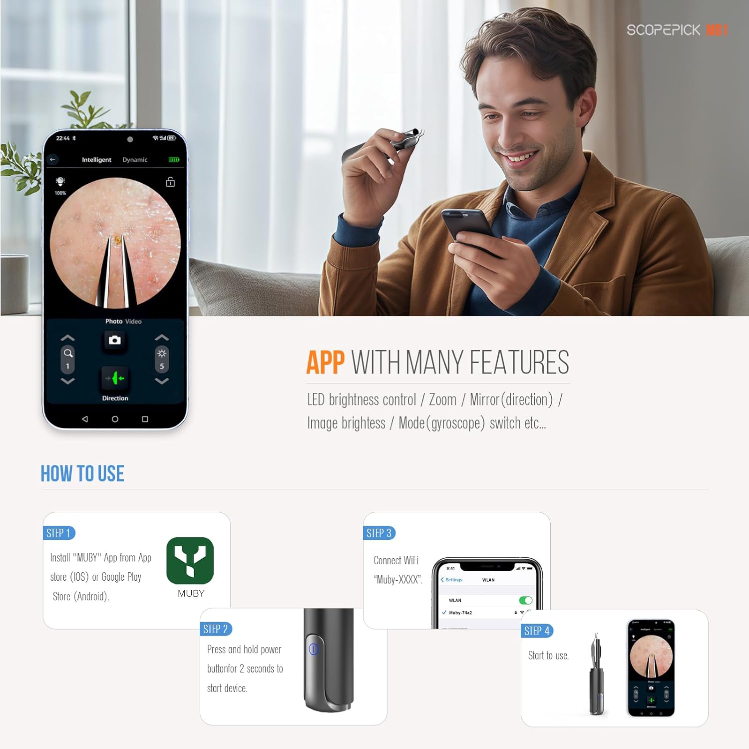 • Precision-Engineered Tweezers: Designed with a built-in 1080p camera for ultimate accuracy and control when removing blackheads, ingrown hairs, or shaping eyebrows.