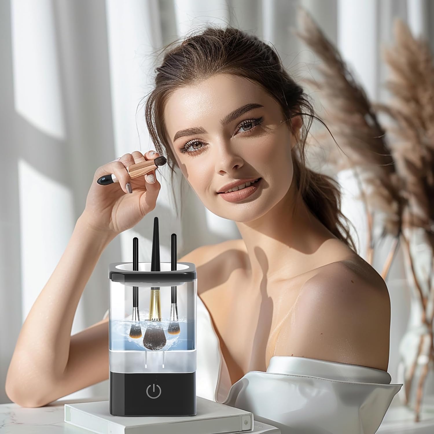 • 【Perfect for Different Brushes】Upgraded automatic makeup brush cleaner is compatible with a wide range of makeup brushes, regardless of their size or shape. From small eyeshadow brushes to larger powder brushes, it tackles them all with ease. No need to worry about damaging your brushes or using multiple cleaners for different brush types.