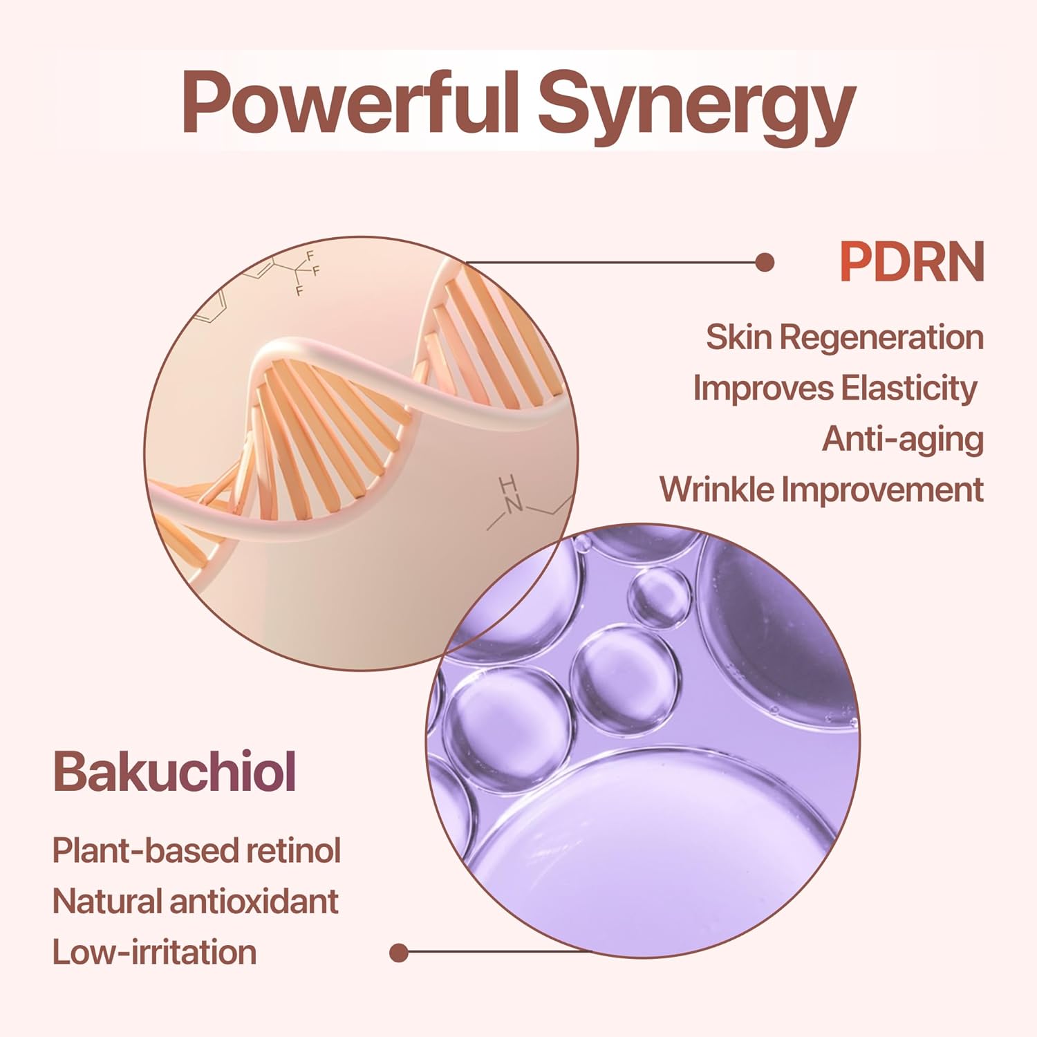 • Plant Based Bakuchiol: The antioxidant bakuchiol is a gentle, plant-based alternative to retinol to help fight visible signs of early aging. In combination with the PDRN, Bifida, and Collagen, your skin will feel moisturized and protected.