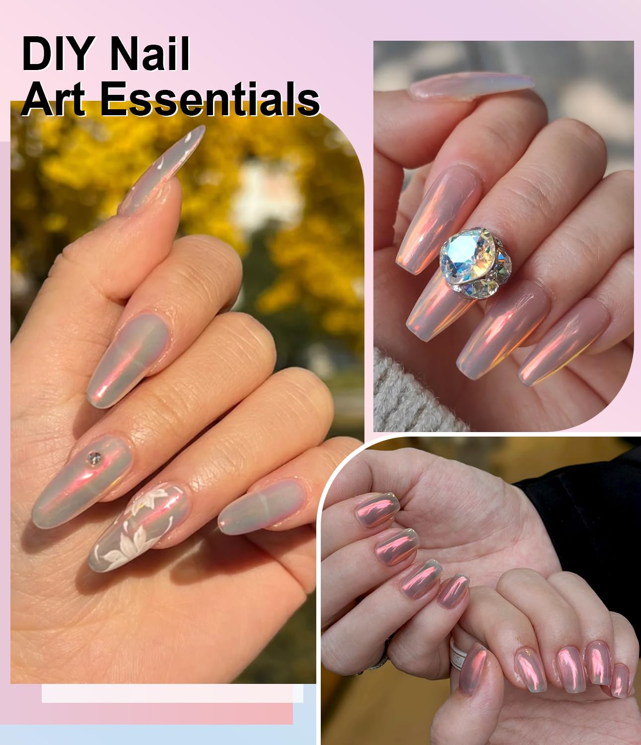 • Mirror Effect: BISHENGYF unique mirror effect white pearl chrome nail powder design of the pink glitter series chrome nail powder can not only significantly enhance the sense of fashion and individuality of nail art,but also clear chrome nail powder add a touch of unparalleled glamour and fun to your overall look.