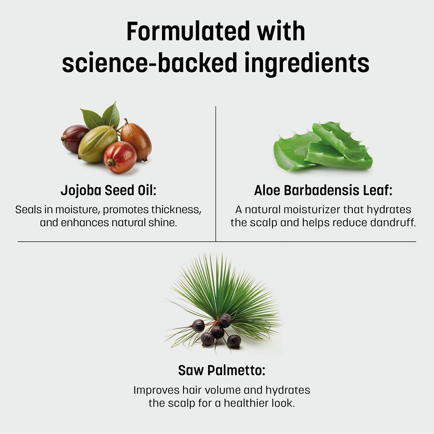 • ORGANIC & NATURAL INGREDIENTS FOR HEALTHY HAIR- Formulated with 96% naturally derived ingredients, including jojoba oil, aloe vera, and saw palmetto, to nourish and strengthen hair without harsh chemicals.