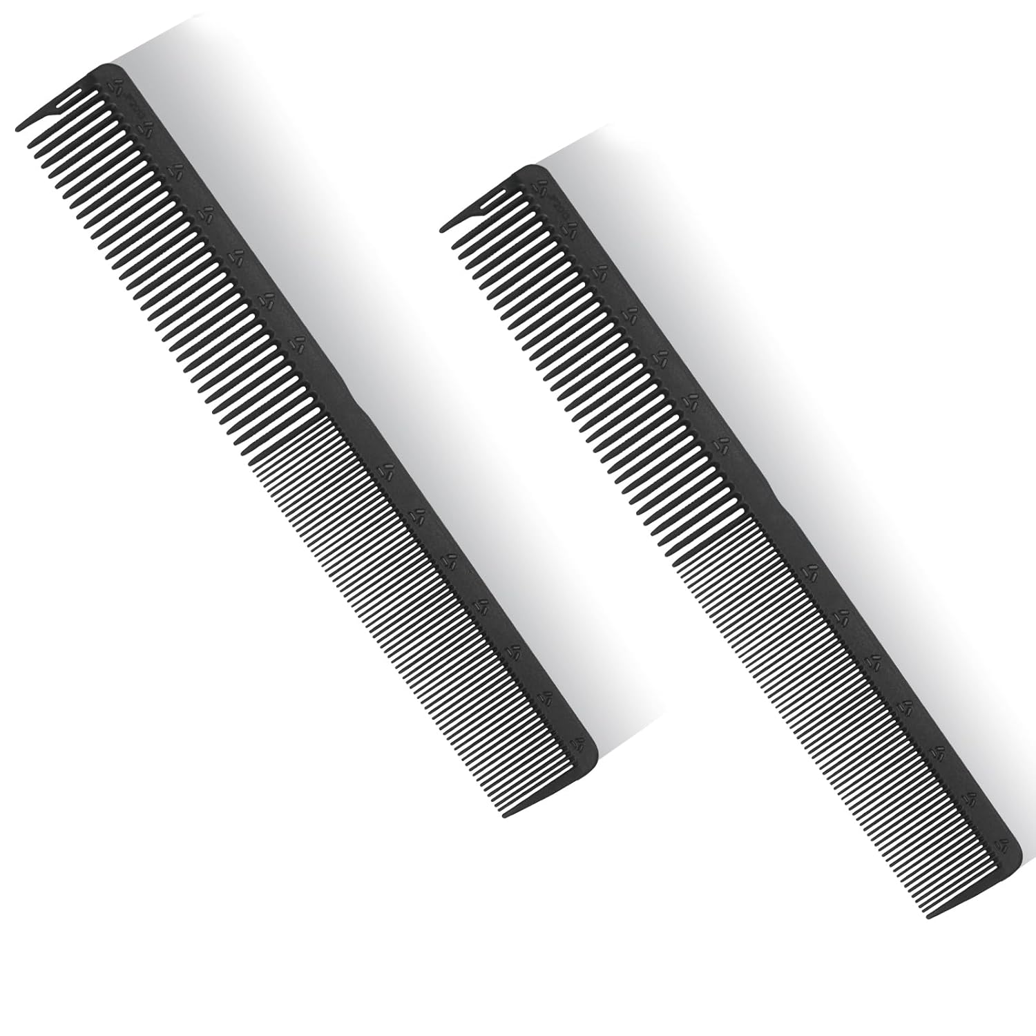 PERFEHAIR 2-Pack Professional Round Tooth Hair Cutting Comb - 7.4 Inch, Black Carbon Fiber Anti-Static & Heat Resistant, Durable Barber Combs with Fine & Wide Tooth for Precise Haircut for Men & Women