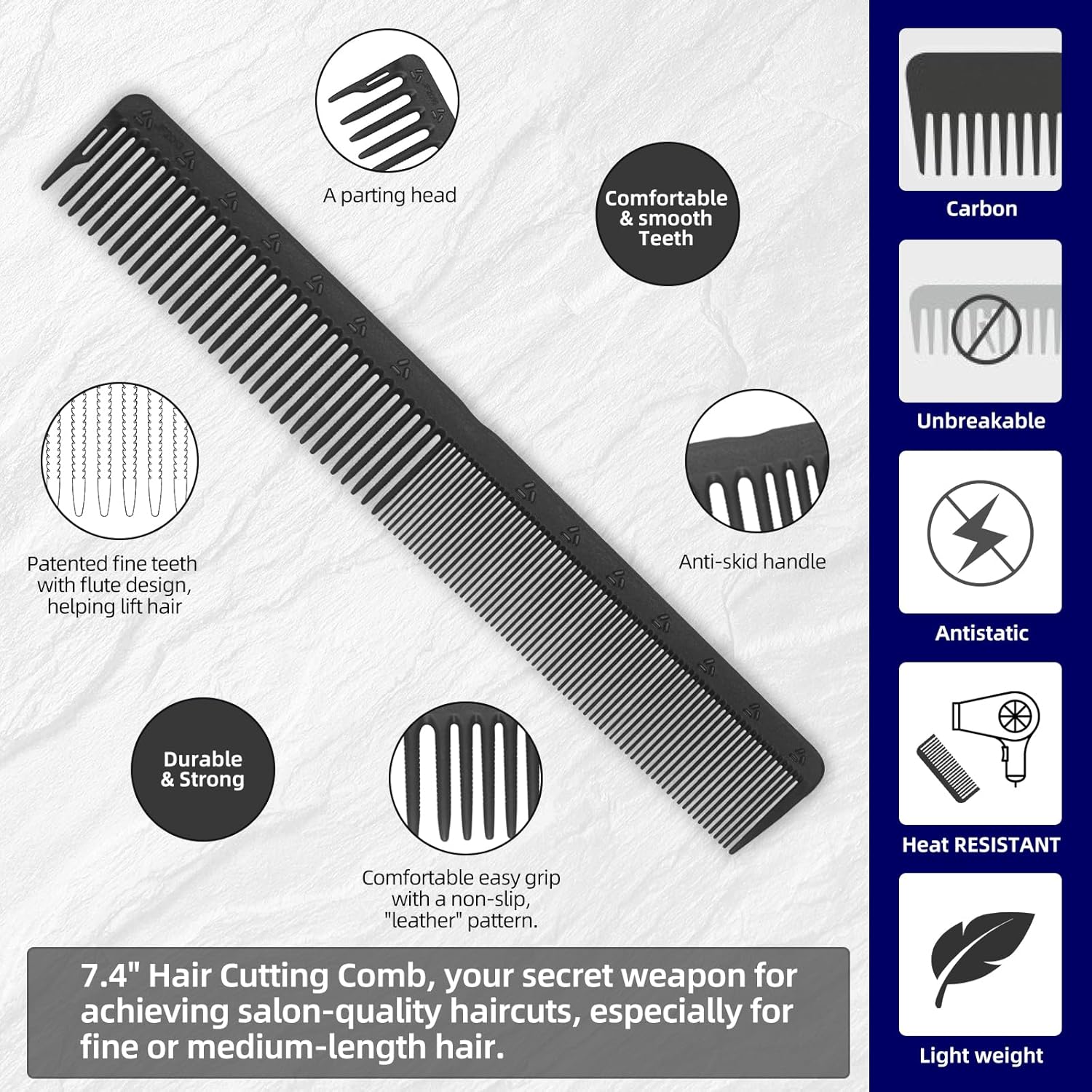 • Ideal for Fine Cutting: This lightweight carbon fiber comb is perfect for barbers, stylists, and home users handling mid-length to short hair or bob cuts. The Special Sectioning Tooth feature enables easy parting and sectioning, perfect for advanced and basic fine cutting.
