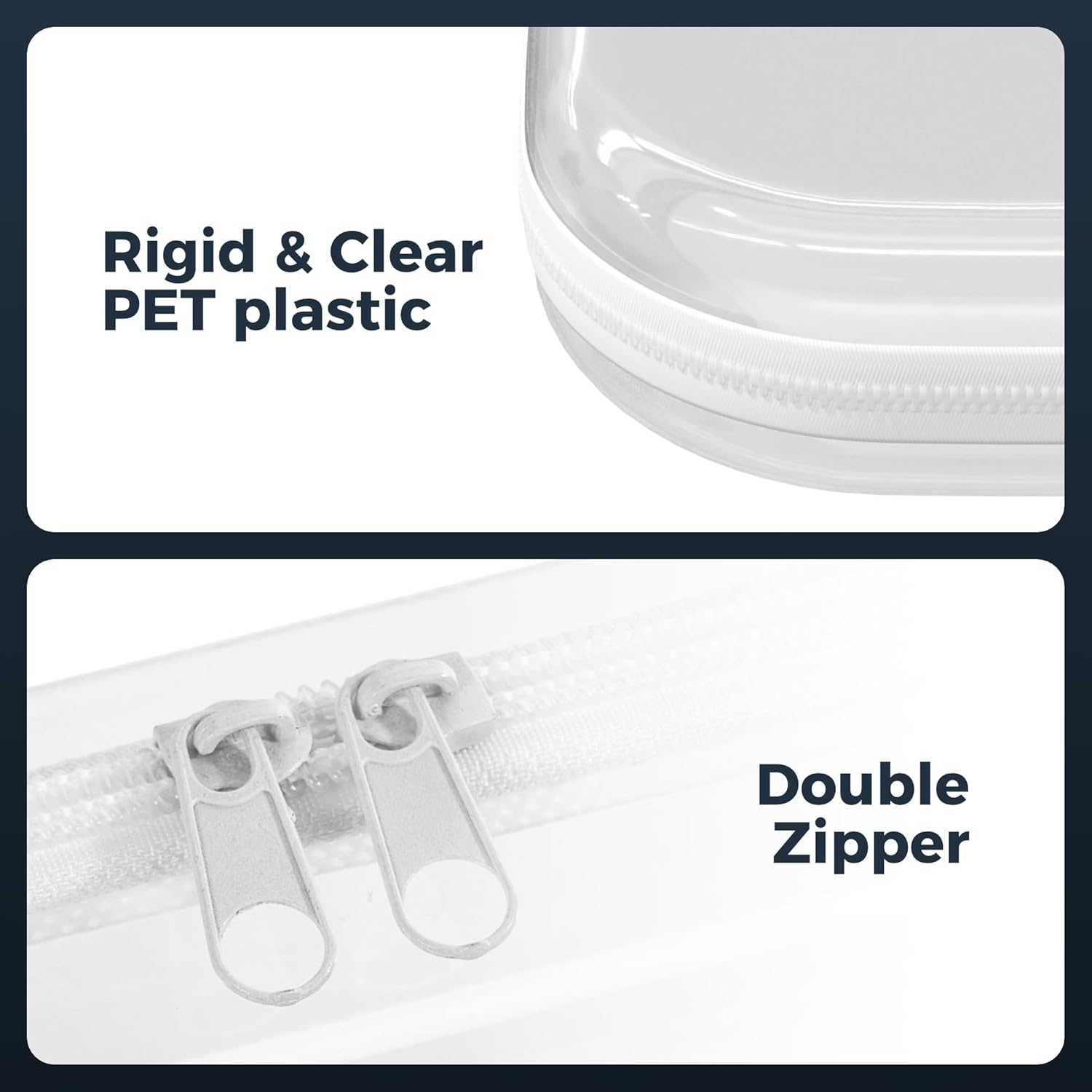 • 𝐏𝐄𝐑𝐅𝐄𝐂𝐓 π…πŽπ‘ 𝐓𝐑𝐀𝐕𝐄𝐋 𝐀𝐍𝐃 π‡πŽπŒπ„ 𝐔𝐒𝐄: Lightweight yet durable, these clear zippered hard shell cases are perfect for organizing toiletries, cosmetics, and travel supplies during trips. They also serve as practical storage solutions at home, helping to keep puzzles, toys, and other items tidy and in order.