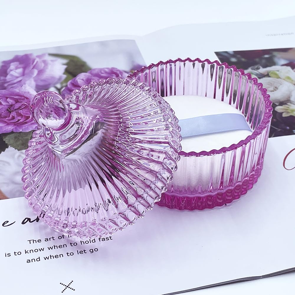 • Exquisite and elegant crystal glass container: The container is made of high-quality crystal glass, with a unique and clever design that reflects a dazzling light in the sunlight.It is not just a powder puff jar,but also a decorative artwork.It can also be used as a container for jewelry,candy,and chocolate