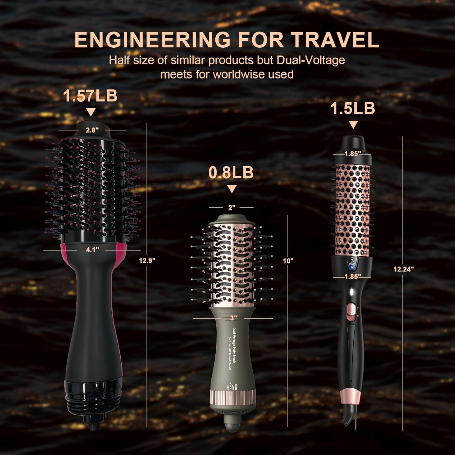 • ใ€๐–๐ก๐ฒ ๐‚๐ก๐จ๐จ๐ฌ๐ž ๐”๐ฌ-๐˜๐จ๐ฎ๐ซ ๐•๐ข๐ฌ๐ข๐จ๐ง, ๐Ž๐ฎ๐ซ ๐Ž๐›๐ฌ๐ž๐ฌ๐ฌ๐ข๐จ๐งใ€‘The ๐„๐“๐‹ ๐‚๐ž๐ซ๐ญ๐ข๐Ÿ๐ข๐œ๐š๐ญ๐ž๐ Dual Voltage Travel Blow Hair Dryer Brush is just ๐ŸŽ.๐Ÿ–๐Ÿ– ๐ฅ๐›๐ฌ. This versatile device boasts a patented ๐Ÿ-๐ˆ๐ง๐œ๐ก ๐จ๐ฏ๐š๐ฅ cylinder engineered with 30% more even heat distribution, delivering enhanced styling performance through optimized airflow dynamics. Besides, it features a ๐Ÿ“.๐Ÿ— ๐Ÿ๐ญ ๐ญ๐š๐ง๐ ๐ฅ๐ž-๐Ÿ๐ซ๐ž๐ž ๐Ÿ‘๐Ÿ”๐ŸŽยฐ swivel cord that prevents tangling for effortless styling, which goes beyond the usual hair dryer.