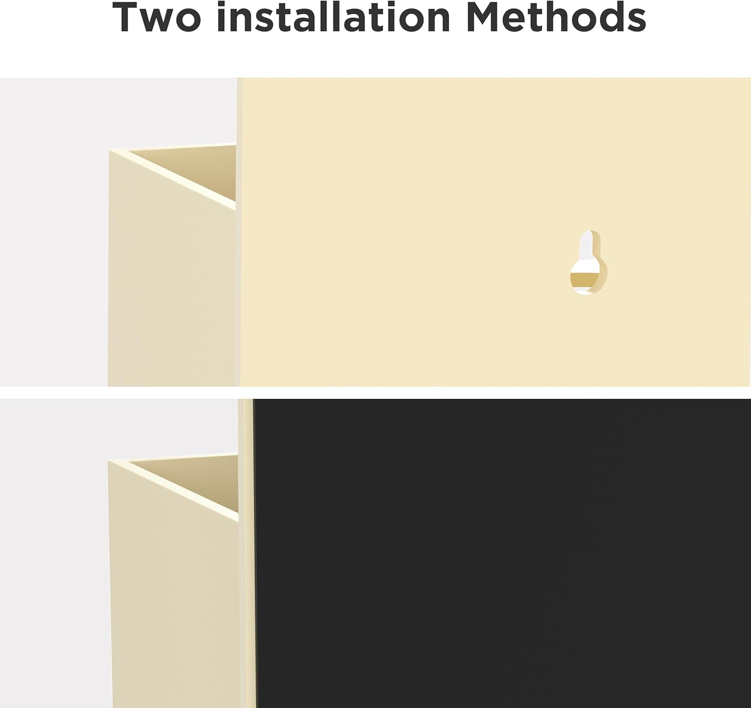 • PATENT PENDING: 𝗣𝗔𝗧𝗘𝗡𝗧 𝗣𝗘𝗡𝗗𝗜𝗡𝗚.This 2-tier design ( Patent Pending ) can ensure that the holes in the bottom tray are just right for holding the tips of standard dry erase markers in place. If you don't want to install it on the wall, it can also be placed on the table top.