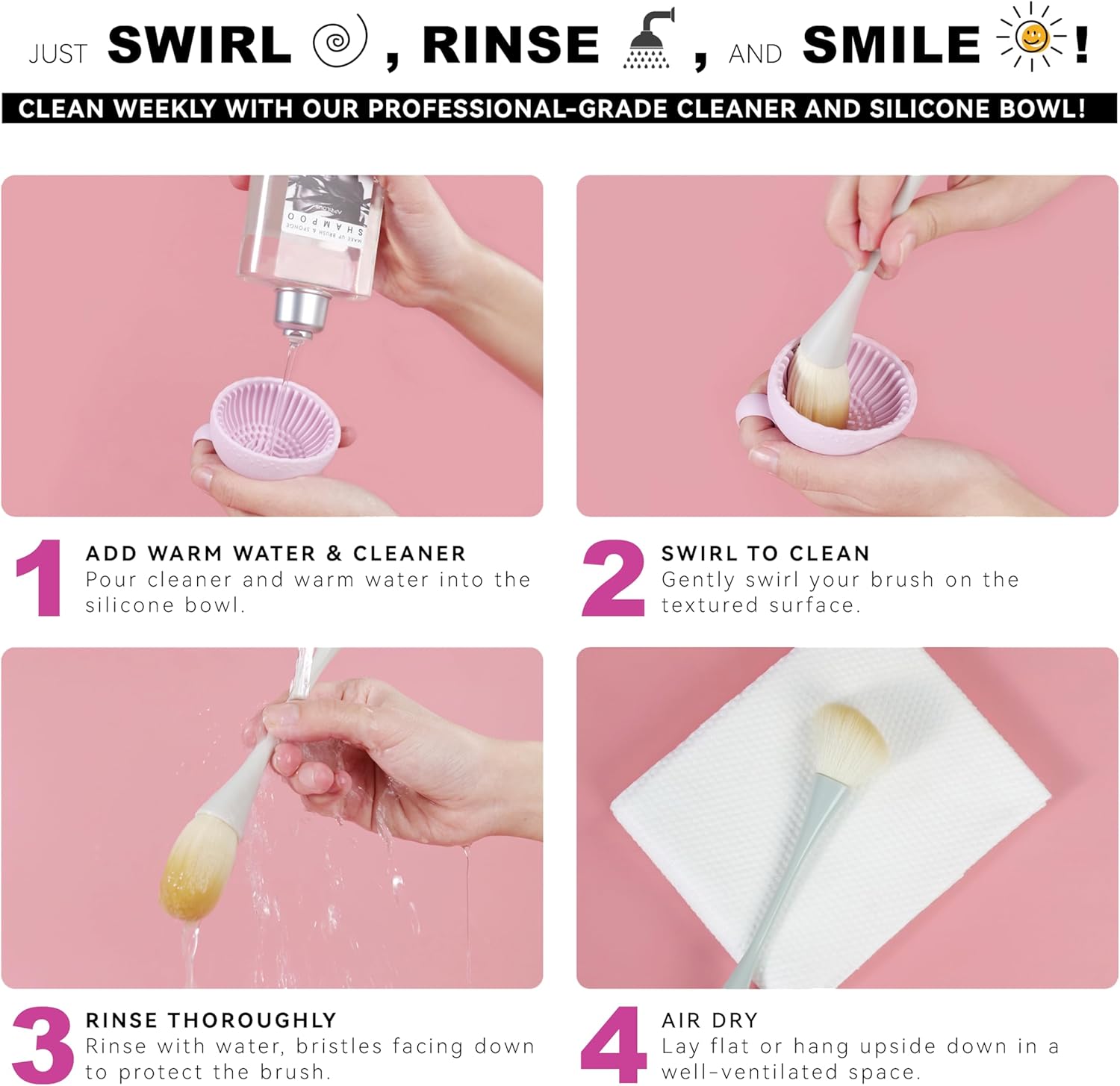 • [Clean in a Snap] Just add lukewarm water and a small amount of cleaner, swirl your brushes in the bowl, rinse with clean water, reshape, and lay flat to dry. Crafted for daily use, this quick and easy process keeps your brushes in top condition. Never run out by using Subscribe & Save, so your brushes are always fresh and ready for your next beauty routine!