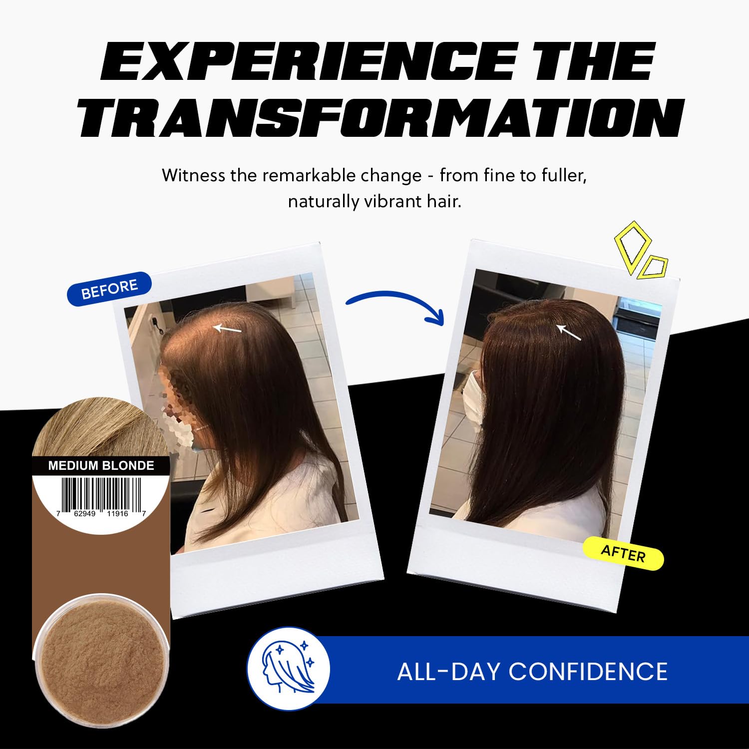 • All-Day Hold: Enjoy a worry-free day with hair fibers for thinning hair that stay put even in the most unpredictable weather; No need for constant touch-ups, our hair fibers provide lasting confidence whether at work, out with friends, or during an intense workout