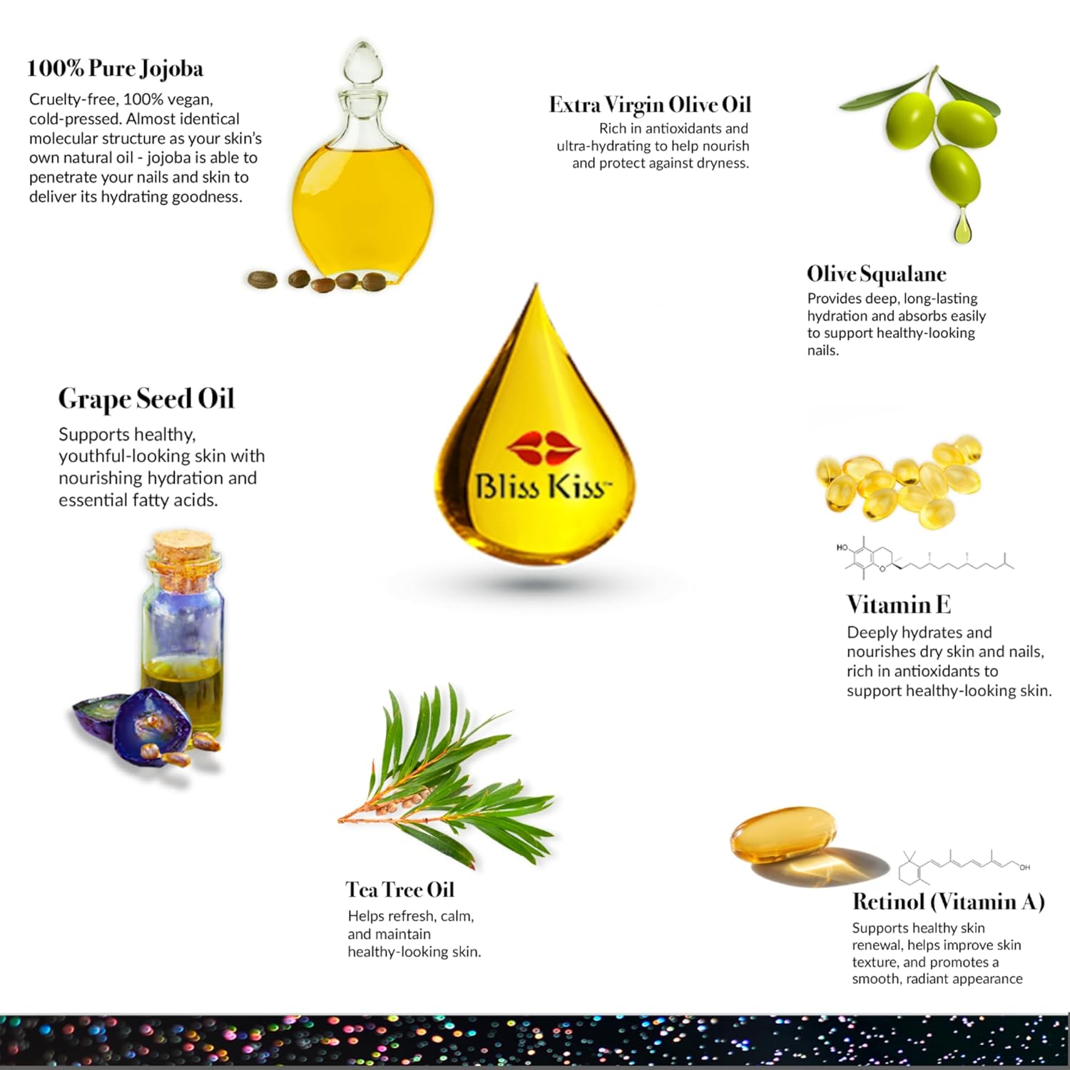 • Specialty : bliss kiss cuticle oil pen, cuticle oil, nail oil, damaged nail repair