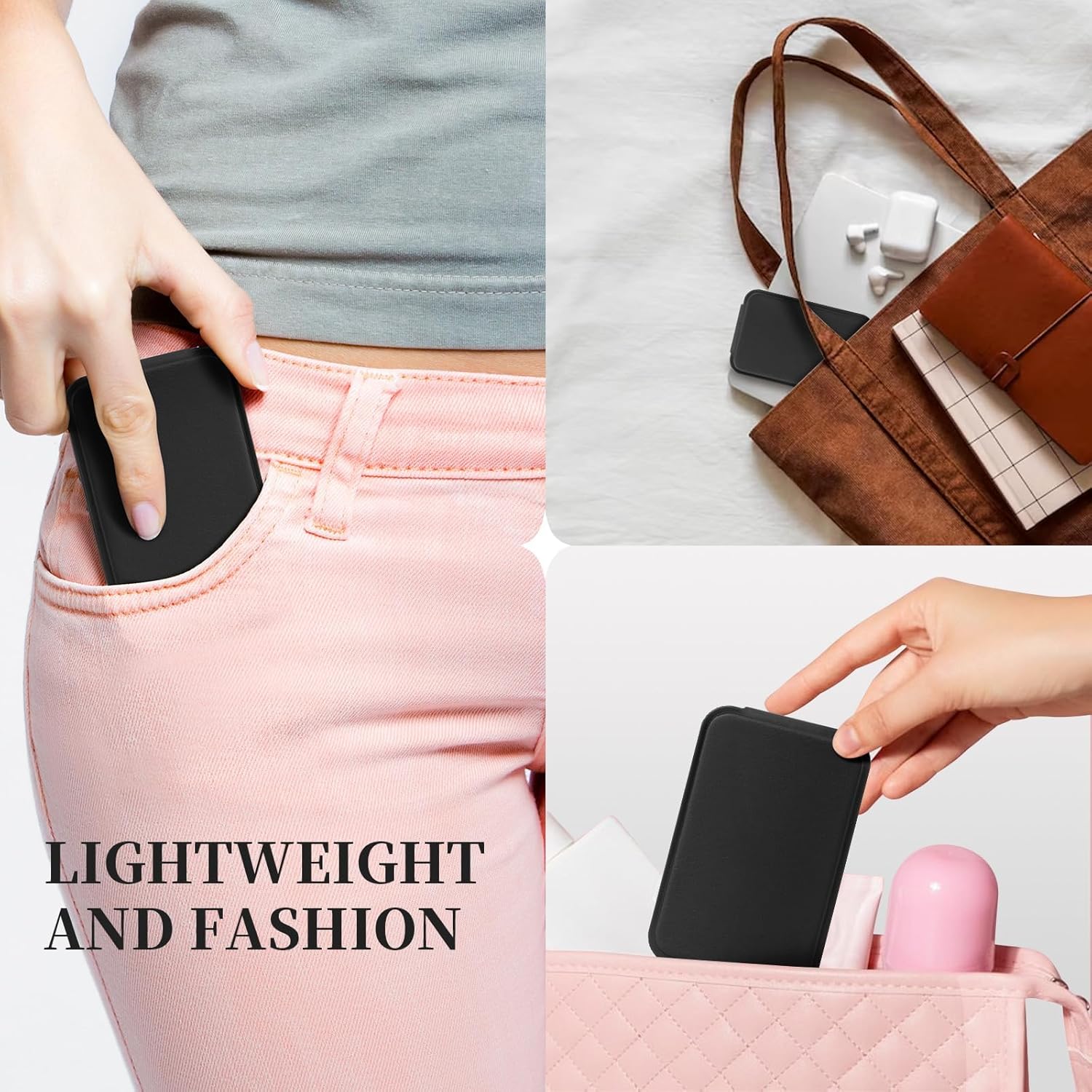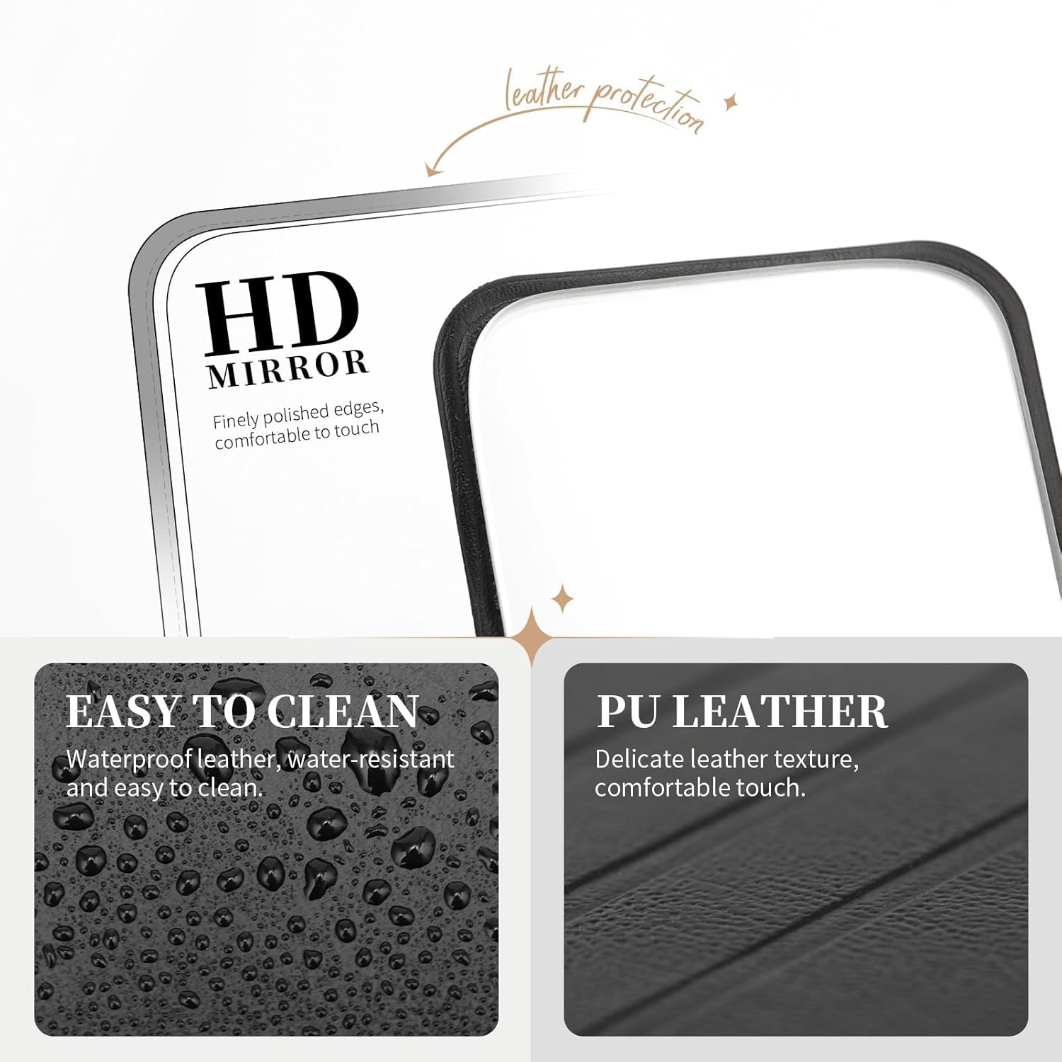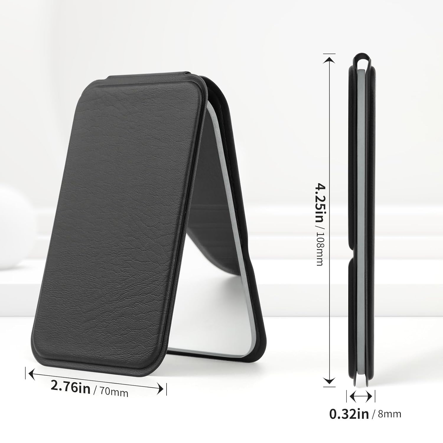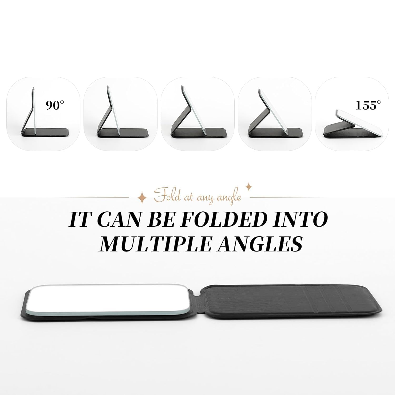 DUcare Mini Folding Mirror Portable Travel PU Portable Adjustable Rectangular Ultrathin Vanity Mirror with Stand, for Travel, Camping,Home