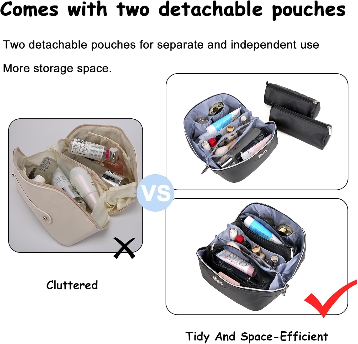 • 3 Pcs Makeup Bags Set: This travel make up bag comes with two detachable makeup pouches, ensuring optimal organization for your skincare products and cosmetics. Perfect for your travel, business trips, vacations, outdoor activities and picnics.
