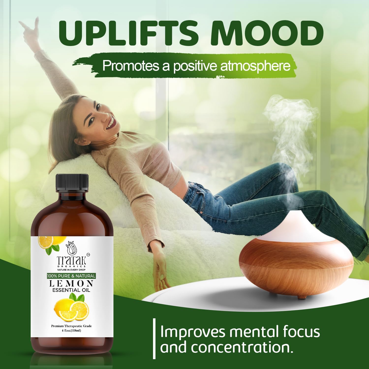 • BLISSFUL AROMATHERAPY: Immerse yourself in the unparalleled purity of Tratak Lemon Essential Oils, meticulously sourced and extracted solely from premium botanicals, untainted by any additives or fillers.