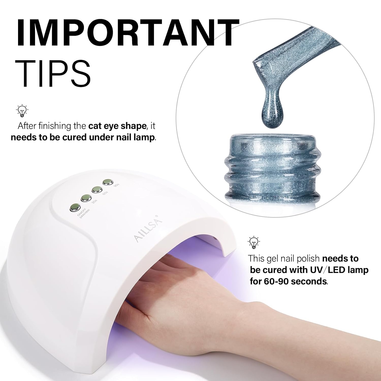 • Crystal Sparkle Effect: AILLSA cat eye gel polish creates mirror-like sparkle, crystal-clear nails, or vibrant cat-eye effects. Use it alone or pair it with any base color for stunning crystal glass nail designs featuring translucent tones and a dazzling finish.