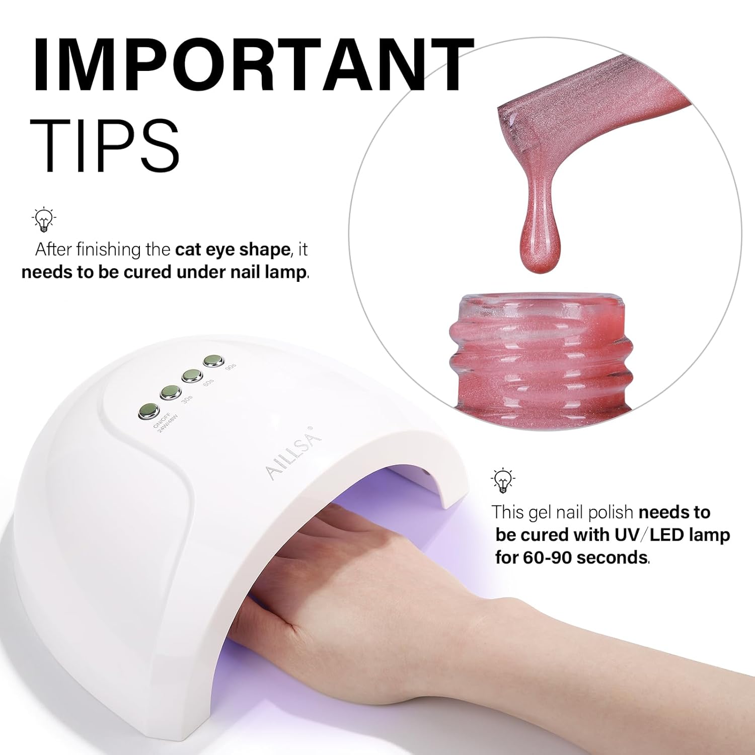 • Crystal Sparkle Effect: AILLSA cat eye gel polish creates mirror-like sparkle, crystal-clear nails, or vibrant cat-eye effects. Use it alone or pair it with any base color for stunning crystal glass nail designs featuring translucent tones and a dazzling finish.