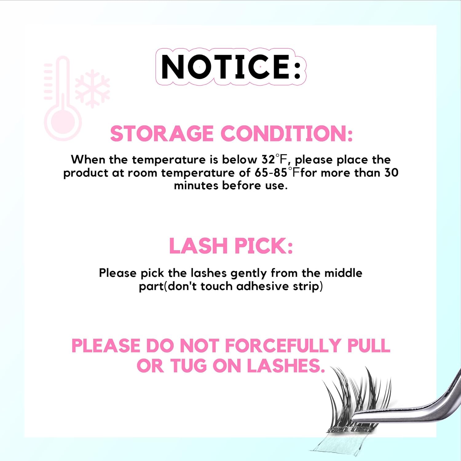 • No Band! New Product:These self-adhesive lash clusters feature the latest stemless technology. Without an extra band, they adhere directly with adhesive glue, giving the appearance of clear-band