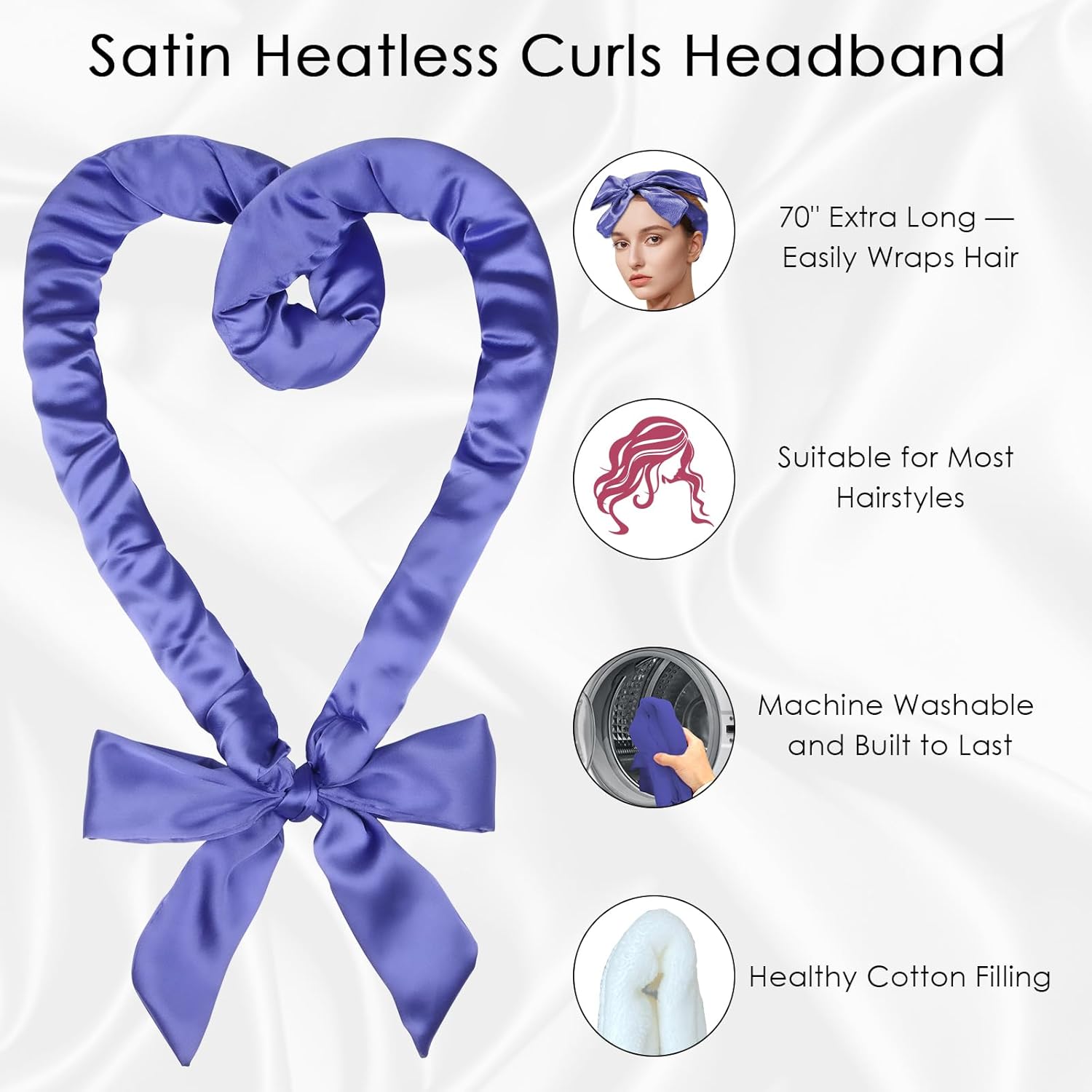 • Heatless Curls: This 70" long overnight curls headband features a non-heating design, avoiding heat damage to the hair, making it perfect for use while sleeping. Enjoy a comfortable sleep and wake up to beautiful, healthy curls and heatless waves