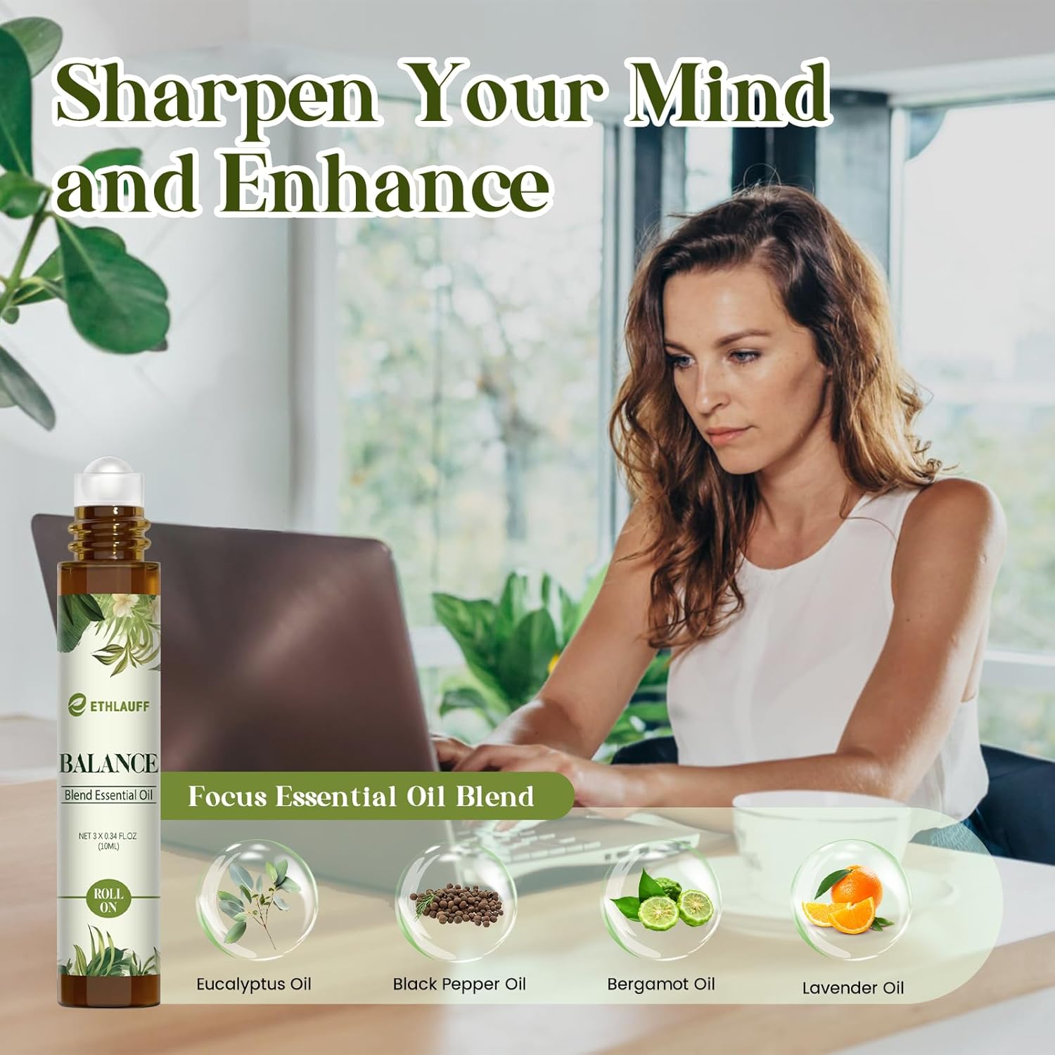 • Self Care Gifts for Women & Men: This essential oil perfume set includes three 10ml bottles, each equipped with a rollerball for easy application and portability. Offering 3 benefits—Balance, Breathe, and Focus On—there's an option for every need. Whether you're looking to refresh, relieve stress, enhance breathing, or more, this set has something for you.