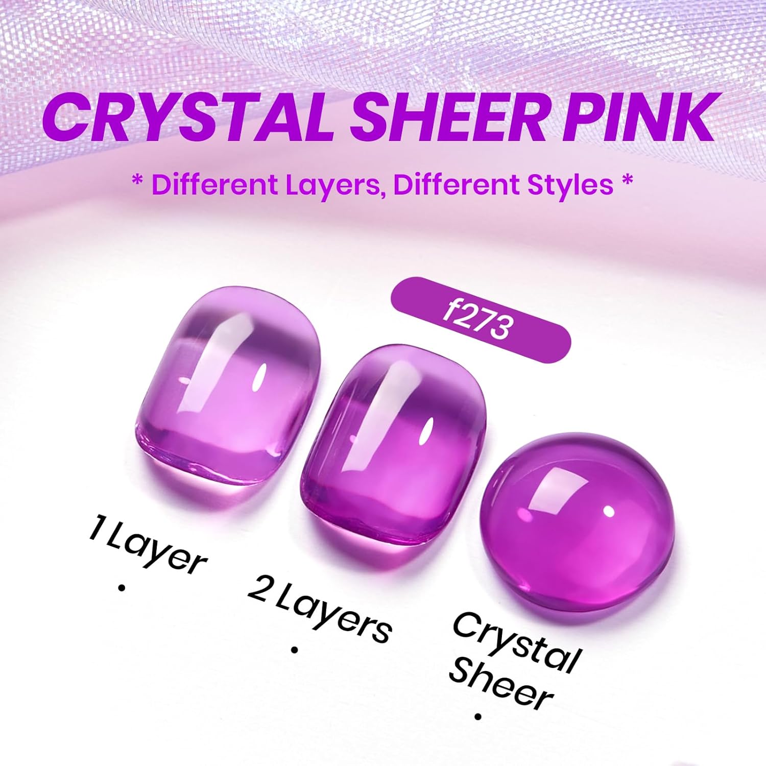 • 【Purple Jelly Sheer Gel 】Apply several layers to build up the color from clear translucent to solid opaque. Each layer, whether one, two, or three layers, creates a different effect. This clear purple jelly gel polish is UV gel and need to be cured 60-120s. (Note: It must be used with a base coat and top coat, which are not included and need to be purchased separately)