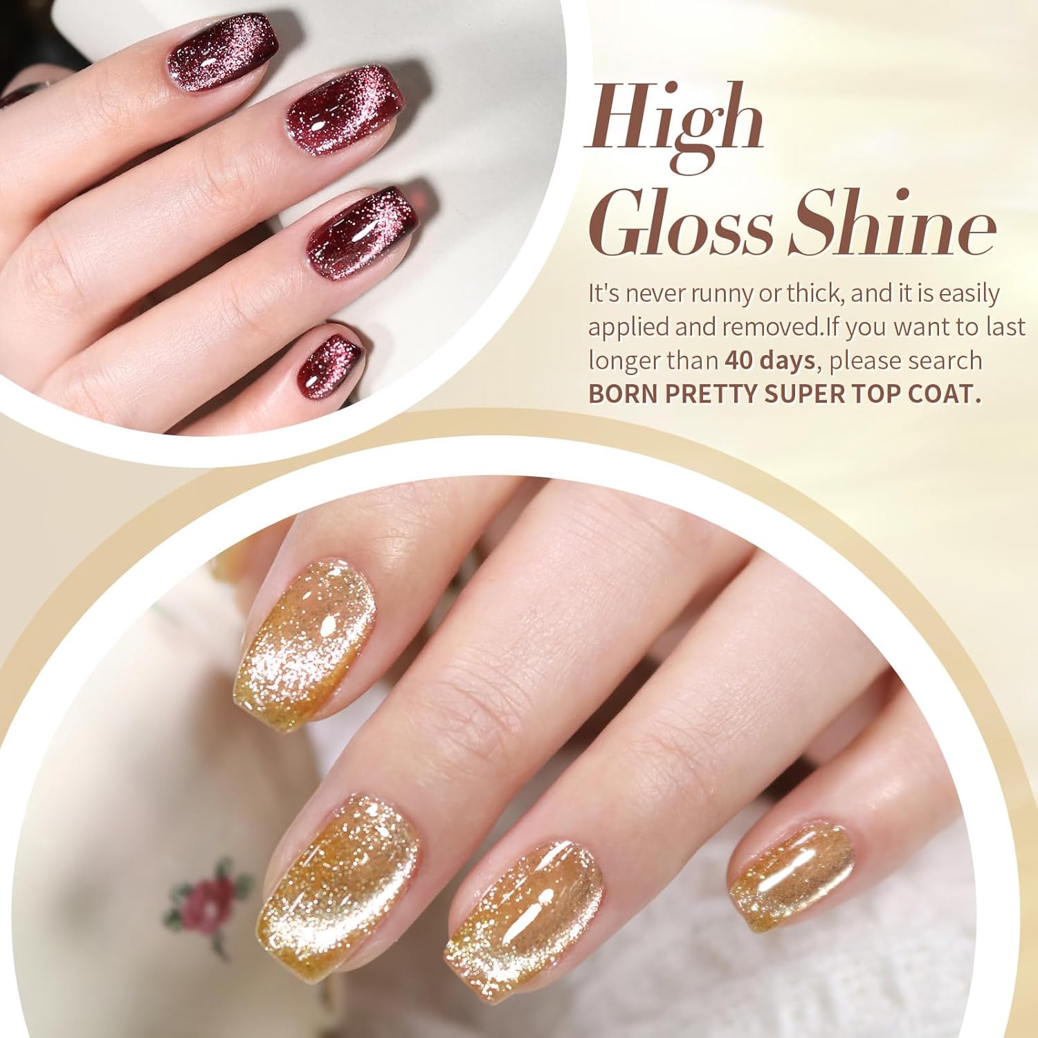 Born Pretty Cat Magnetic Eye Gel Nail Polish Reflective Glitter Gel Polish Red Silver Champagne Gold Glitter Gel Nail Polish 6PCS Set