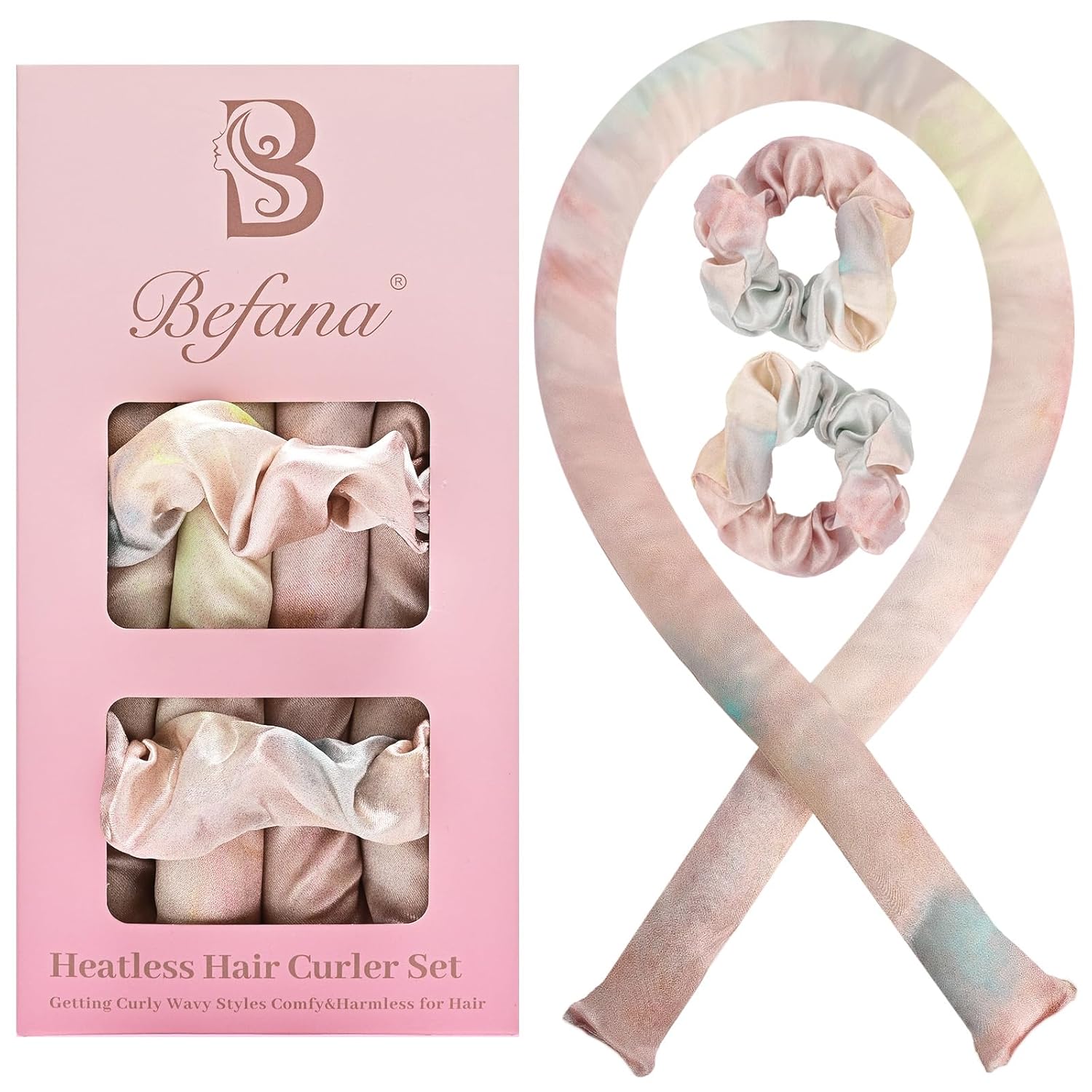• This no-heat curling headband set includes a curling rod and two satin sleep scrunchies, all covered in high-quality satin fabric.