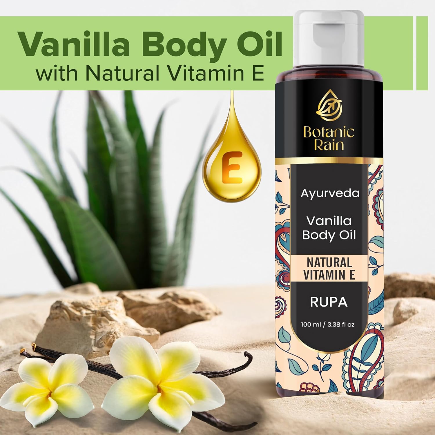 • Natural and Organic Ingredients: Our ayurveda body oil is made with natural and organic ingredients, which means it's gentle on your skin and free from harsh chemicals and synthetic fragrances. Vanilla oil is suitable for use on all skin types, including sensitive skin. Ayurveda products are designed to nourish and hydrate your skin, leaving it feeling silky-smooth and radiant.