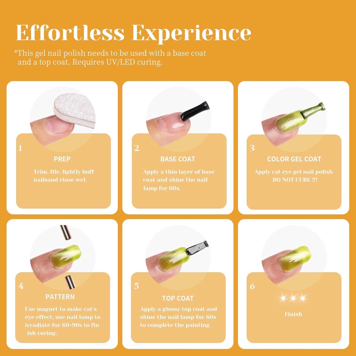 • Achieve stunning nails with TUTUYU's Light Orange Cat Eye Gel Nail Polish, which features a captivating cat eye effect that adds depth and allure to your manicure.