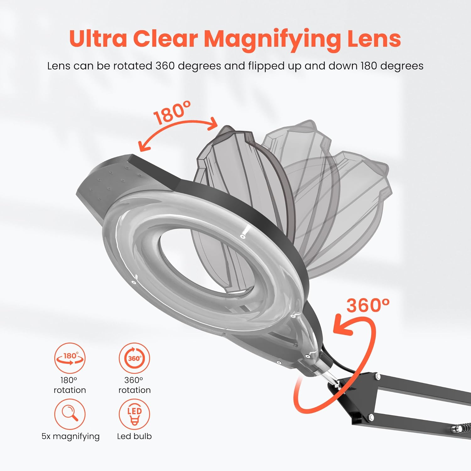 • 5X Magnifying Lamp:Adjustable brightness and a soft glow ensure comfortable use while protecting your eyes, revealing skincare details effortlessly. Perfect for pairing with your favorite facial tools like pore extractors or face sculpting tools.