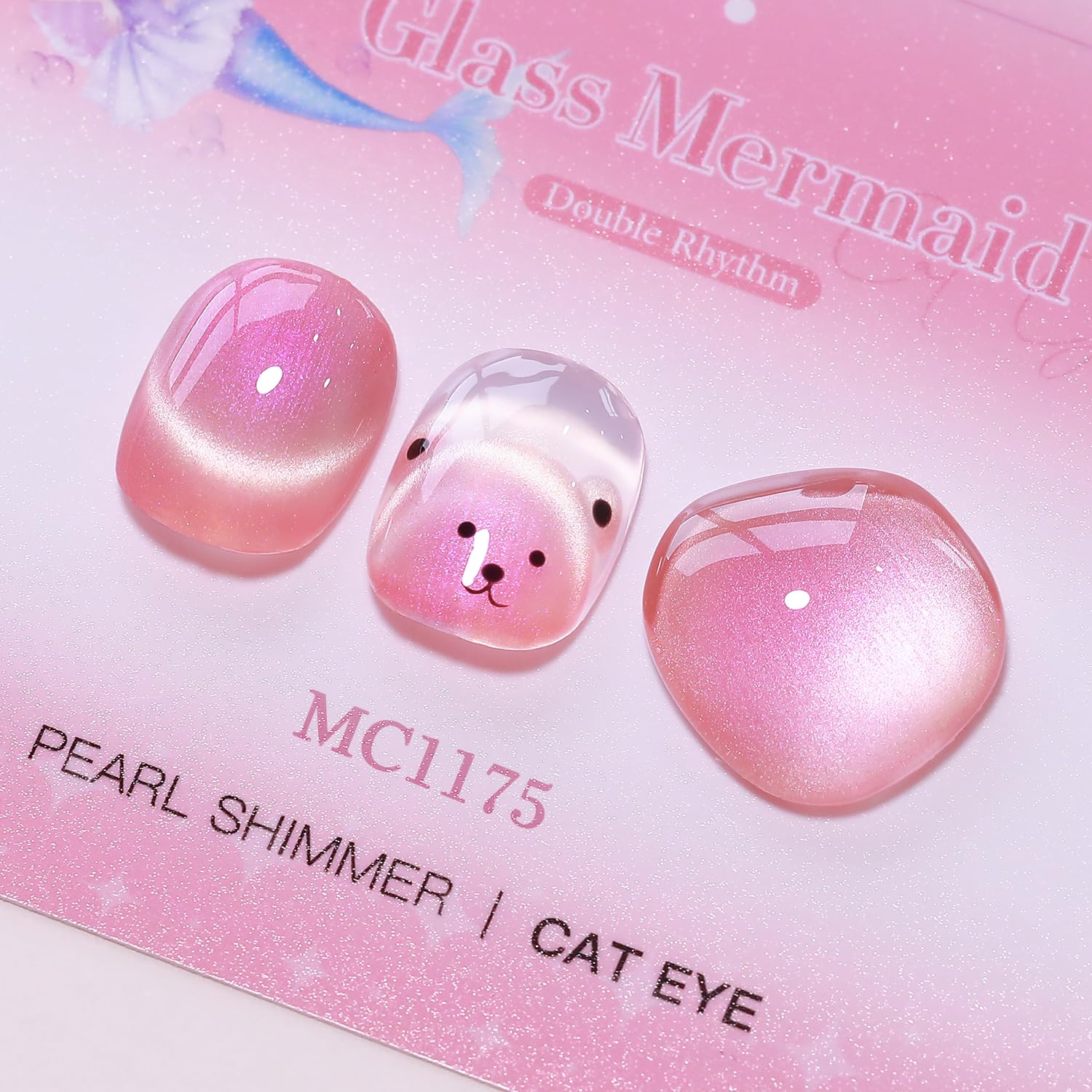 Double Rhythm 0.5 Oz Cat Eye Gel Polish with Magnet Same Color Same Bottle Holographic Glitter Shimmer Translucent Color Salon 15 ML Magnetic Nail Art (Mermaid Pink-MC1175)