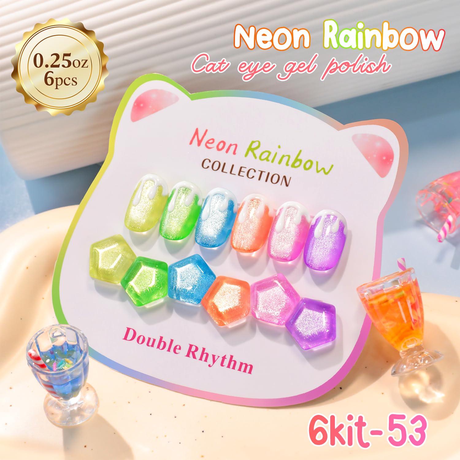 Double Rhythm 6 Colors Cat Eye Gel Polish Set Shimmer Glitter with Magnet Holographic Reflective Magnetic UV Nail Art Kit (6-Kit-53)