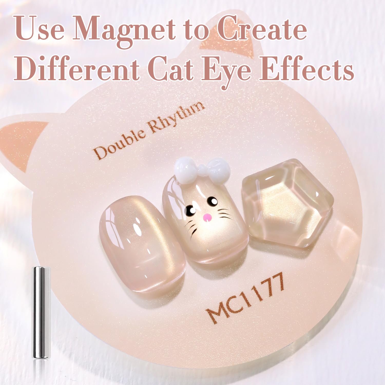 • Same Color Same Bollte Cat Eye Gel Nail Polish : Double Rhythm cat eye gel nail polish kit includes 1 color 15ml / 0.5 fl.oz gel nail polish. The cat eye gel can be combined with different bacse colors arbitrarily, you can get different colors nail art.You can use different base color to creat different sytles.