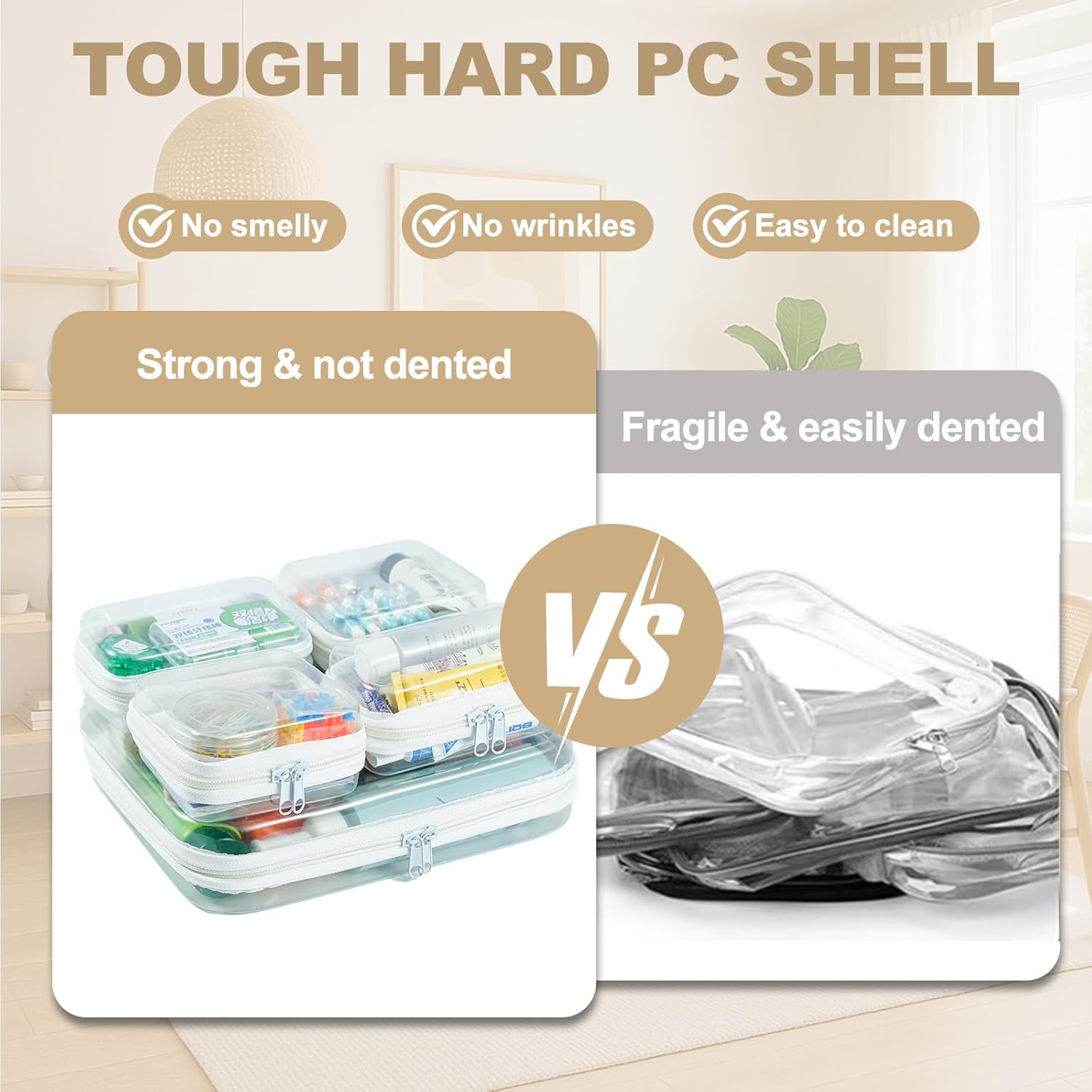 • Crush-Resistant and Travel-Ready The hard shell cases protect your items from pressure or drops, keeping delicate contents safe. Whether you’re commuting or traveling, these clear zipper bags are built to withstand the journey.
