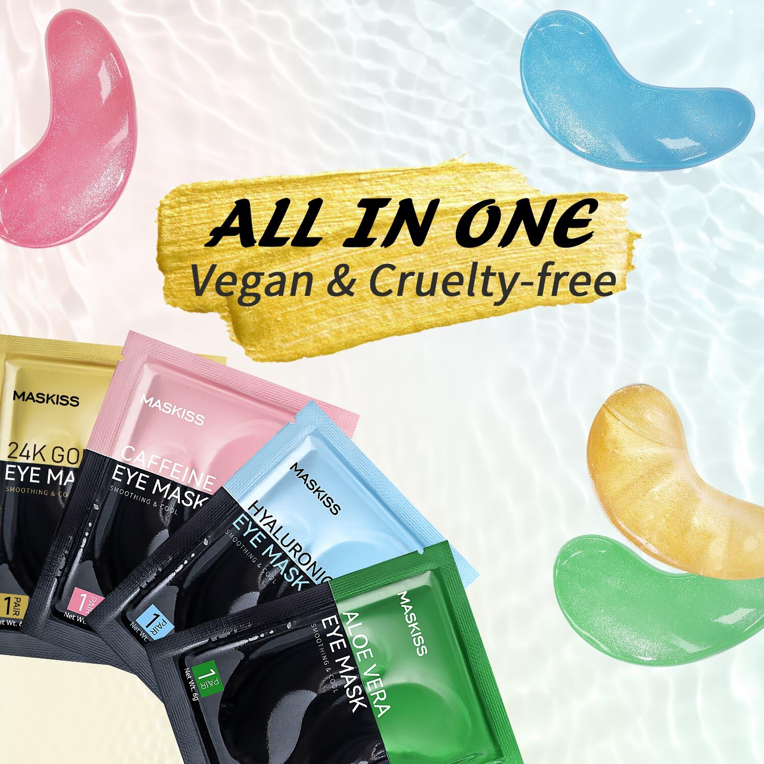 • Comprehensive Eye Care Treatment: The Maskiss set includes 4 colors, 25 pairs of under-eye patches. 24k Gold eye mask helps to smooth the skin, reduce fine lines and wrinkles. Caffeine eye patches help promotes eye metabolism and circulation, and reduces eye bags and puffy eyes. Hyaluronic acid eye masks help to fade dry lines and wrinkles, and locks in moisture and nutrition. Aloe vera eye patch helps to reduce pigmentation, repair the healing barrier, and gently moisturize the skin. Add these to your daily self-care routine for a visibly younger, well-rested appearance.